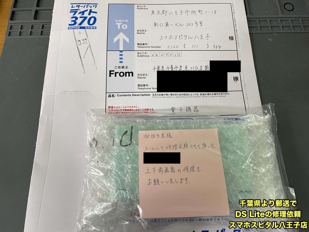 DSLite 上下画面の修理ご依頼! 千葉県よりご郵送でご依頼を頂きました!