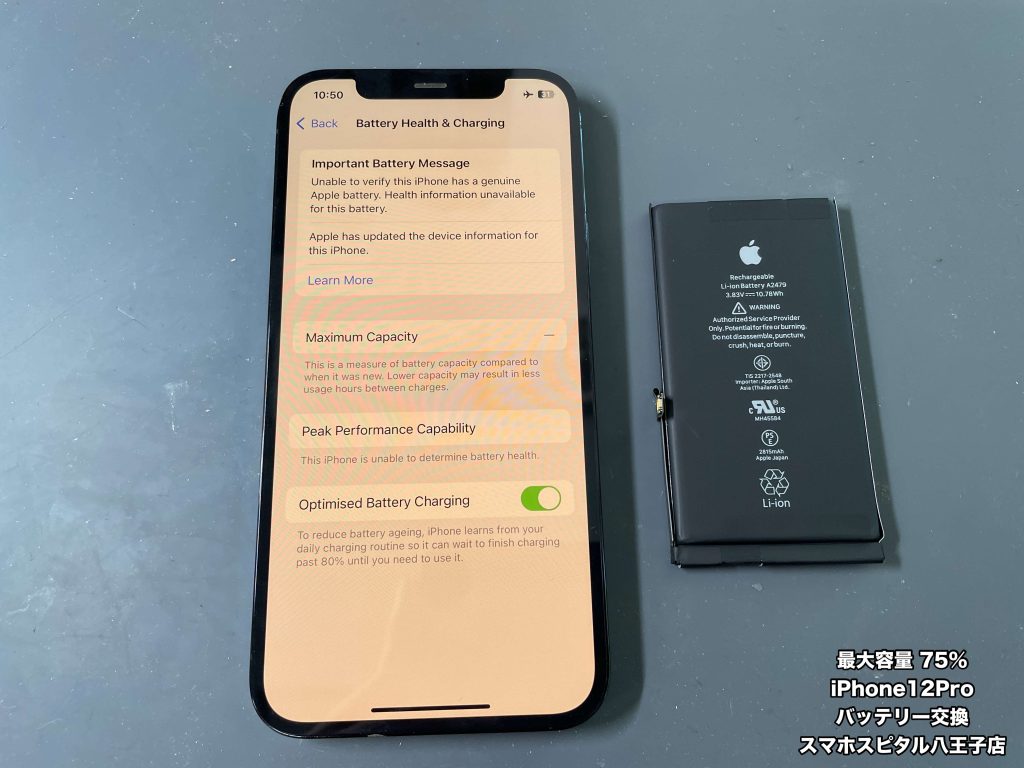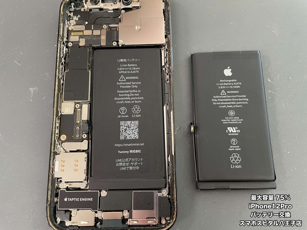 【iPhone12Pro 修理】 最大容量が75%まで下がってしまったiPhone12Proのバッテリー交換ご依頼!