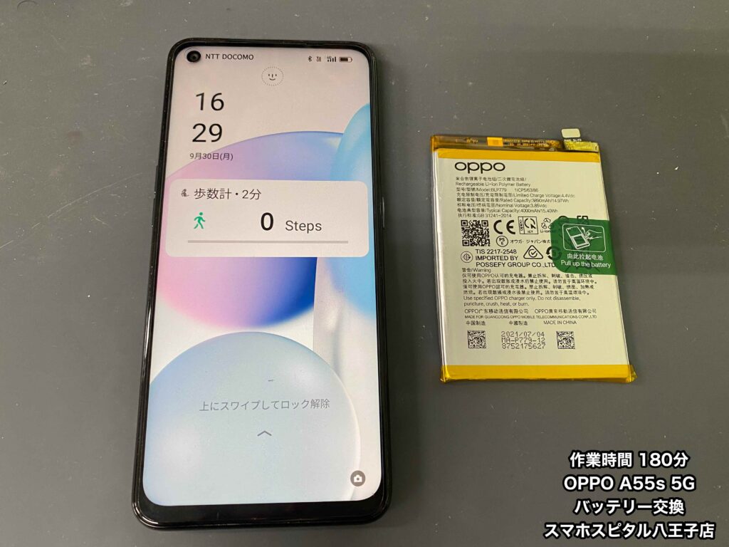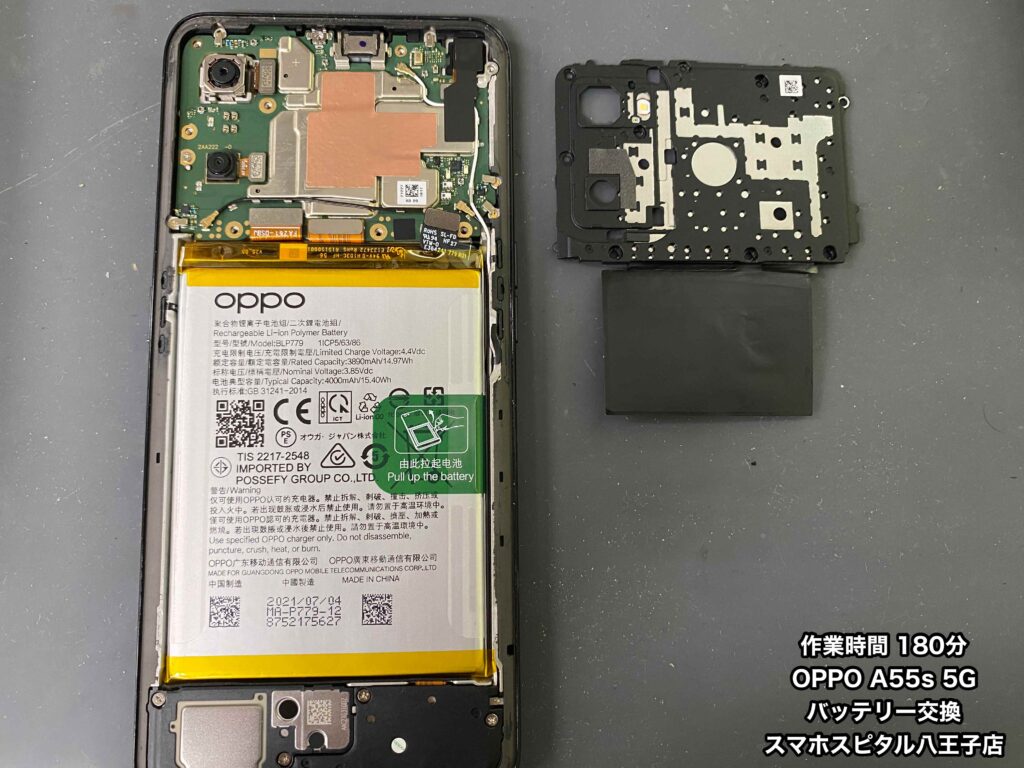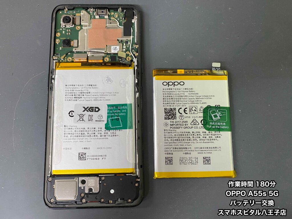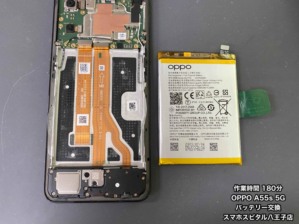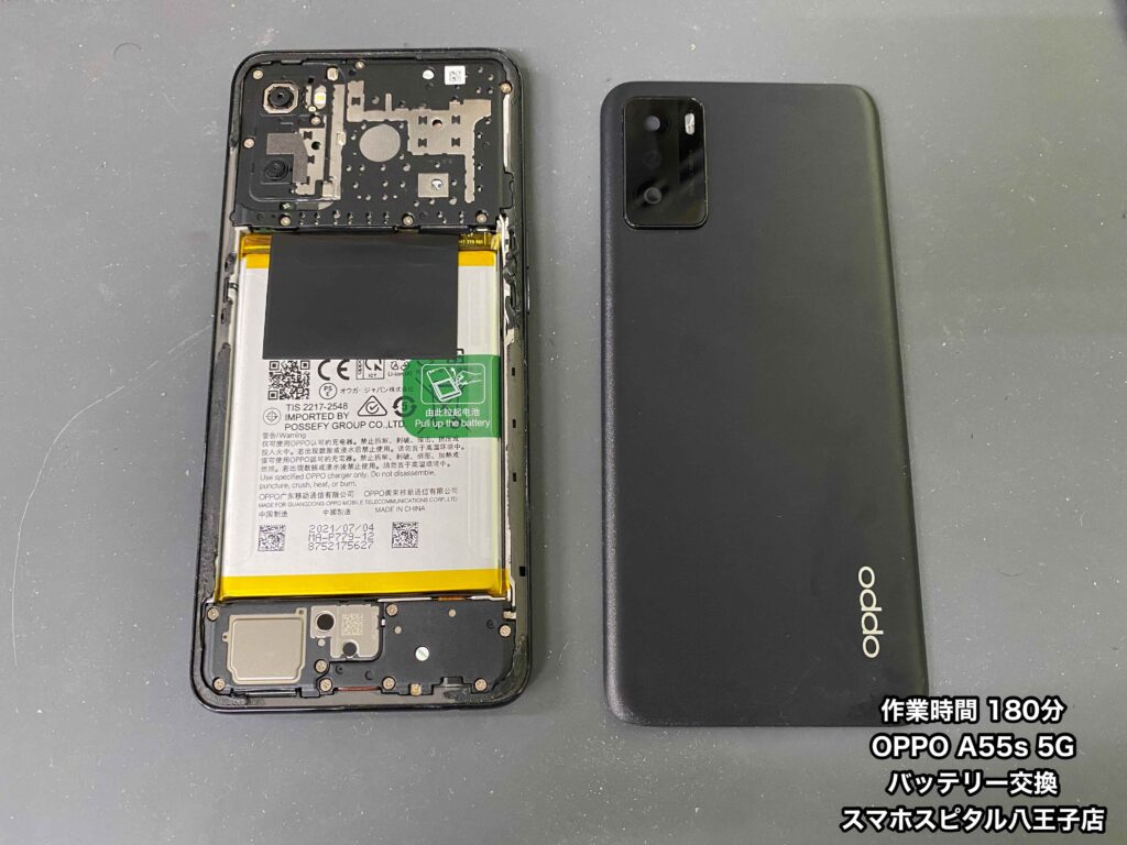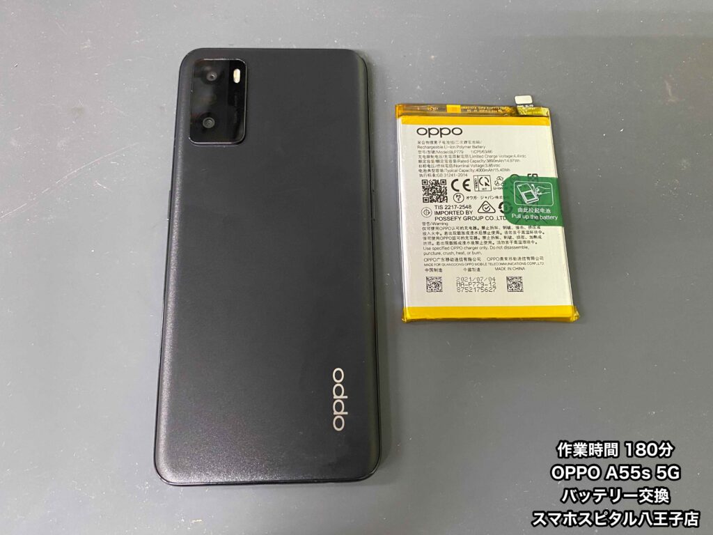 スマホスピタル八王子店はOPPO A55s 5G(CPH2309)のバッテリー交換修理