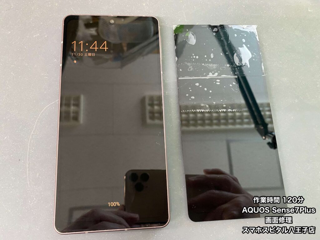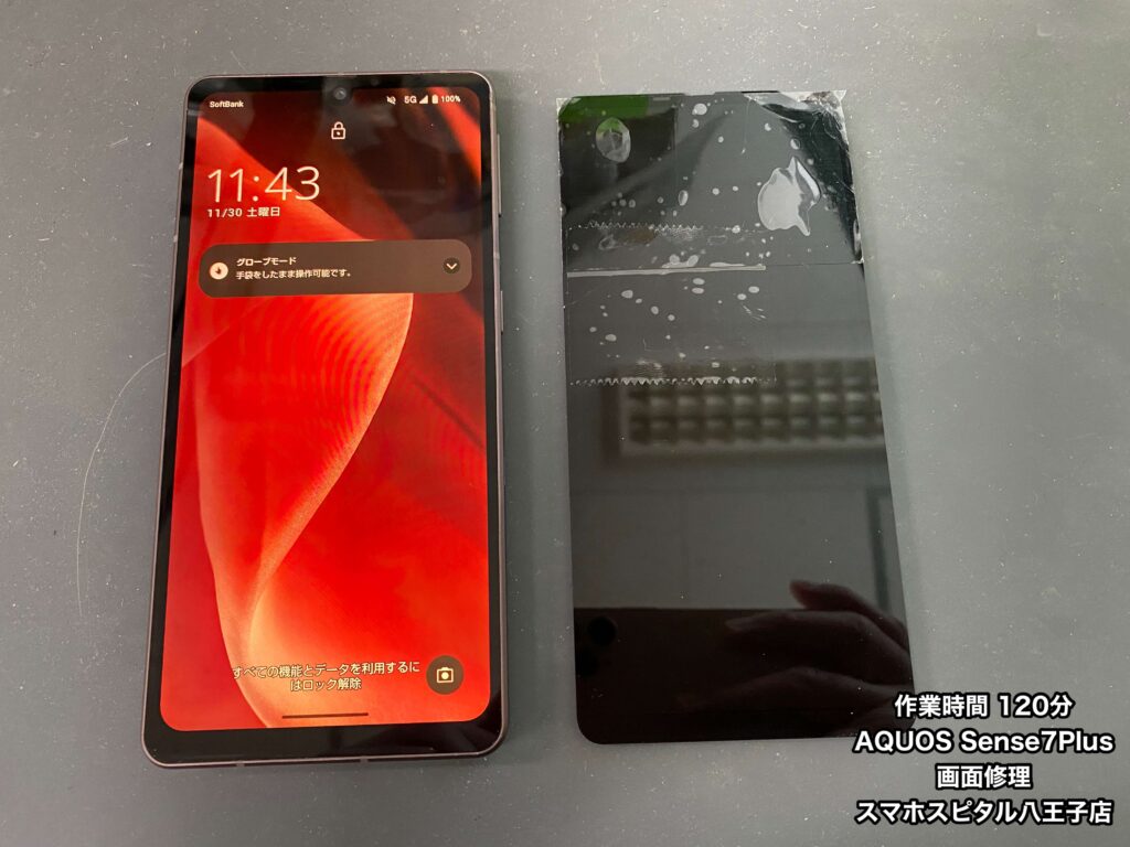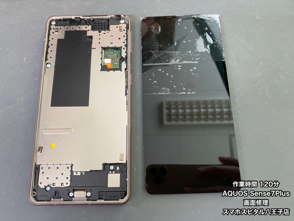 【AQUOS Sense7Plus 修理】画面の交換修理お任せください!!作業時間120分!ご予約の方優先で作業を行なっております!!