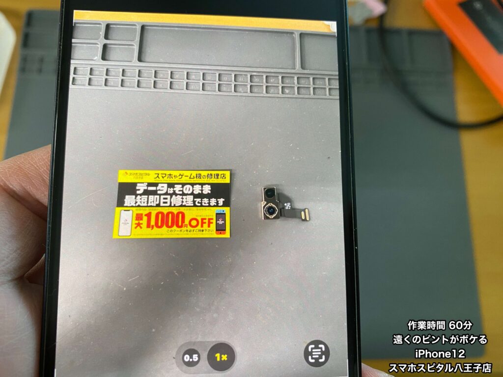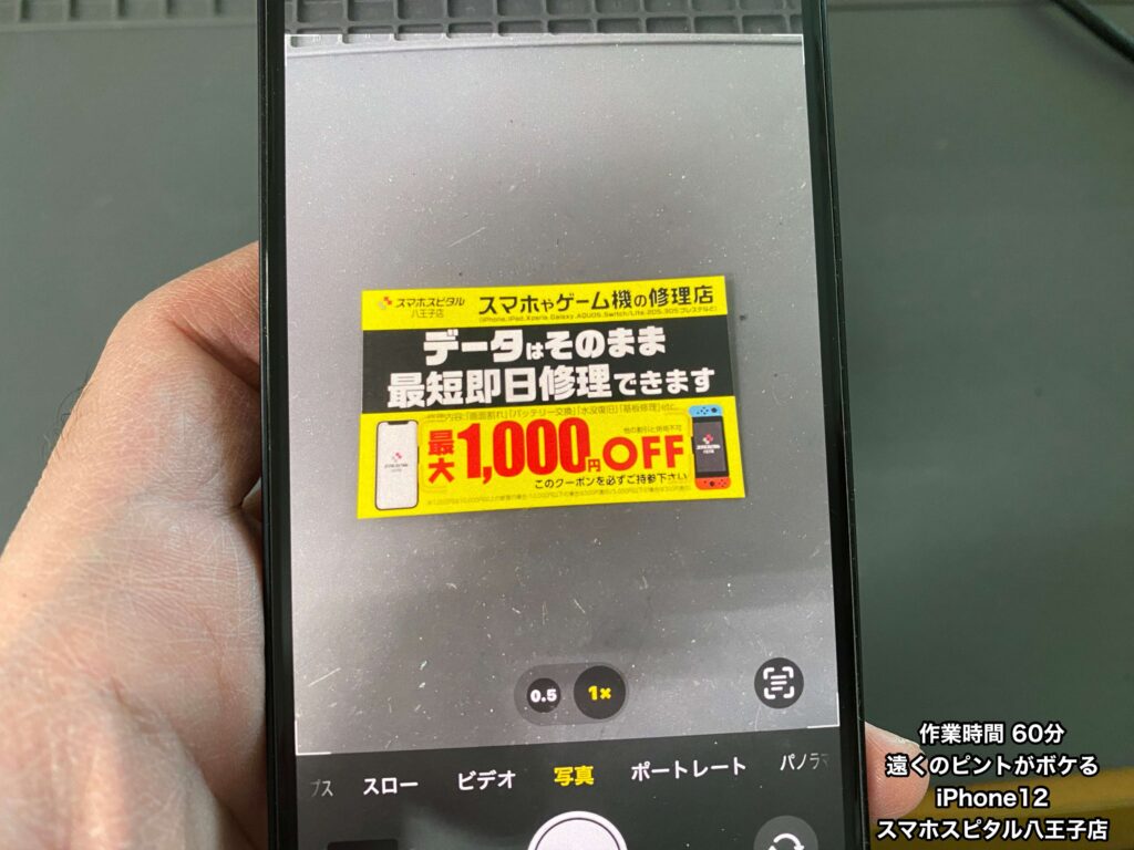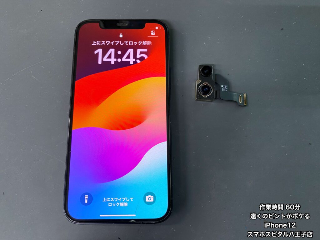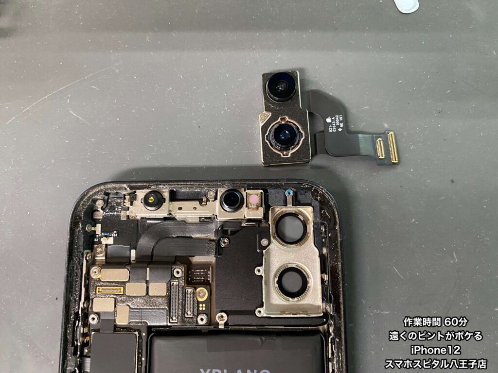 近くのピントは合うが、遠目だとピントが合わずボケてしまうとiPhone12をお持ち込みいただきました。