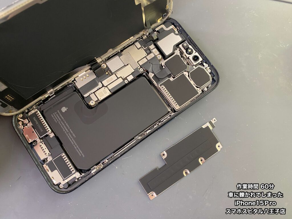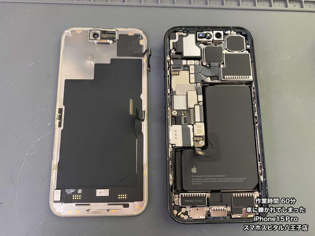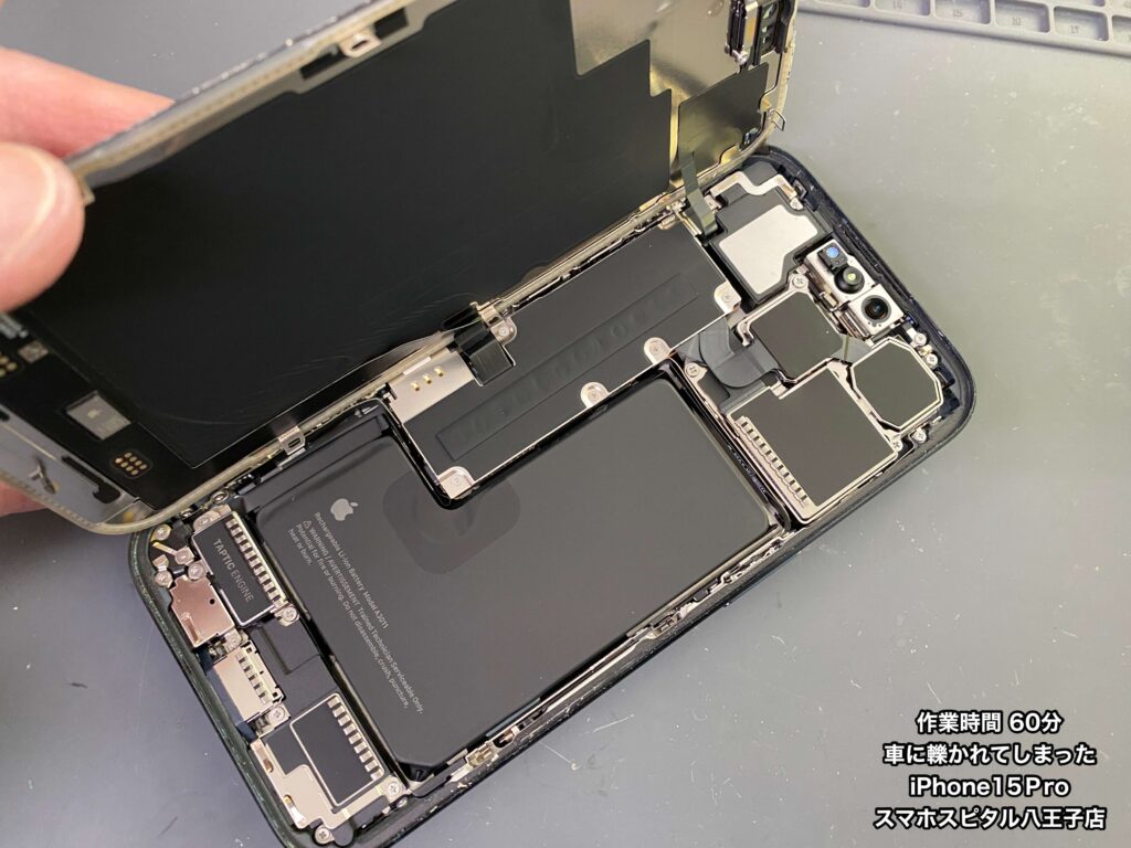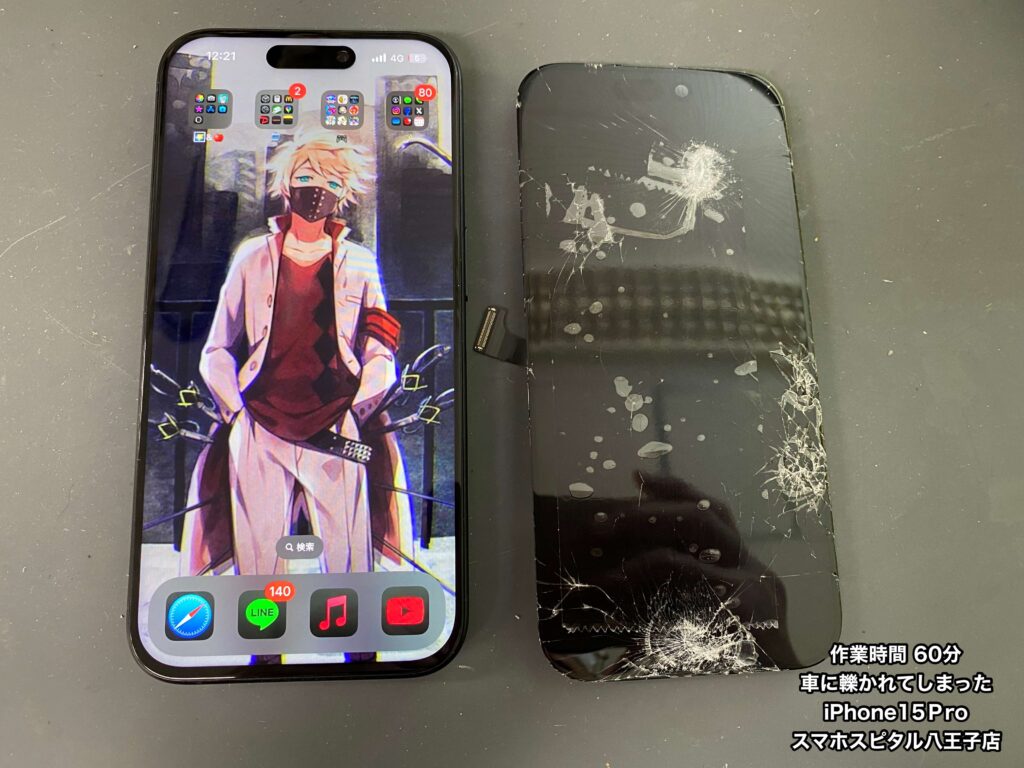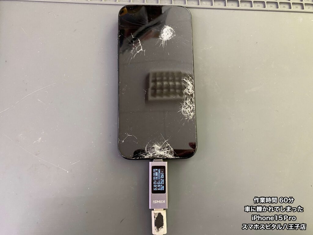 【iPhone15Pro 修理 八王子】車に轢かれたiPhone15Pro!?画面が真っ暗で音も鳴らない…他店は数日かかる修理も当店は即日で対応できます!!
