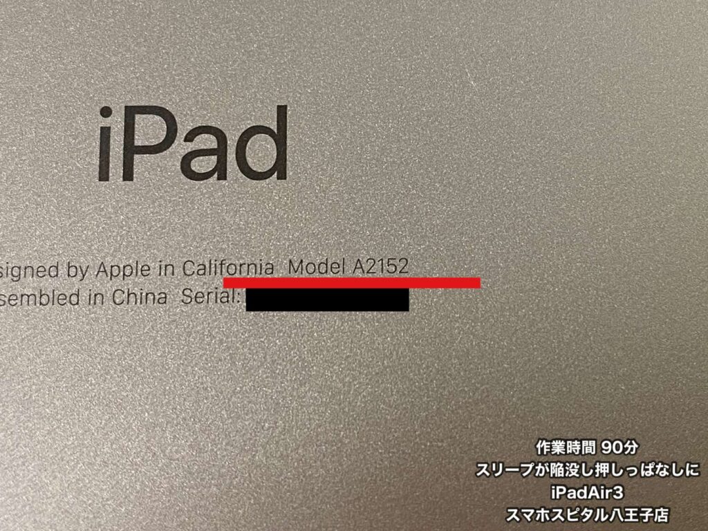 iPadのモデル番号は背面に記載あります。