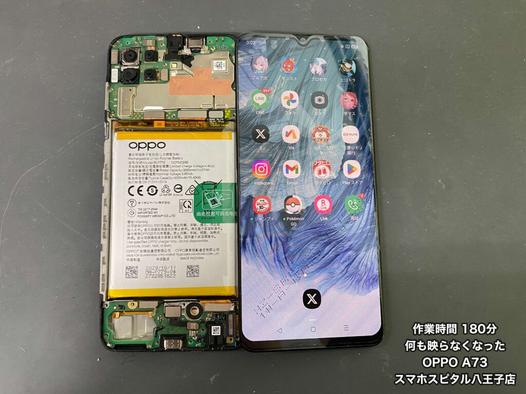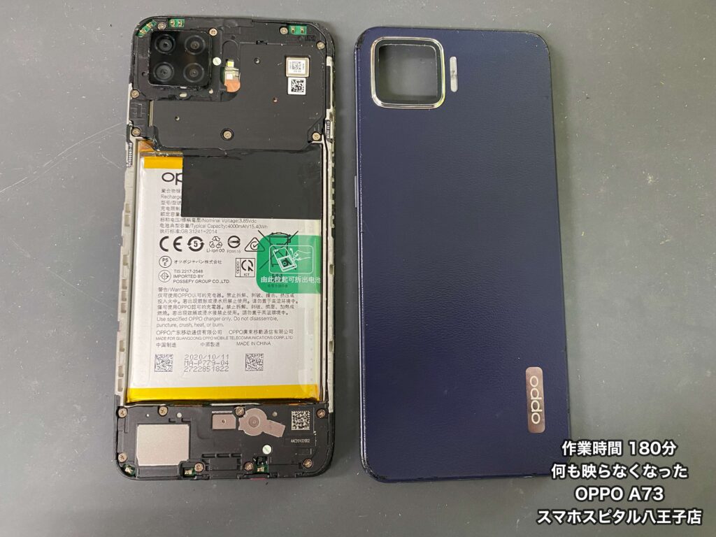 画面が映らなくなってしまったと八王子市内在住のお客様よりOPPO A73(CPH2099)をお持ち込みいただきました!