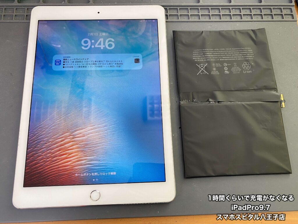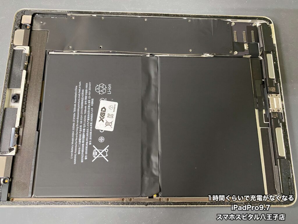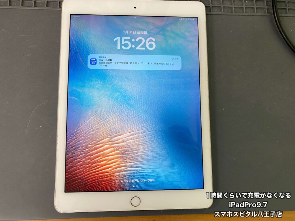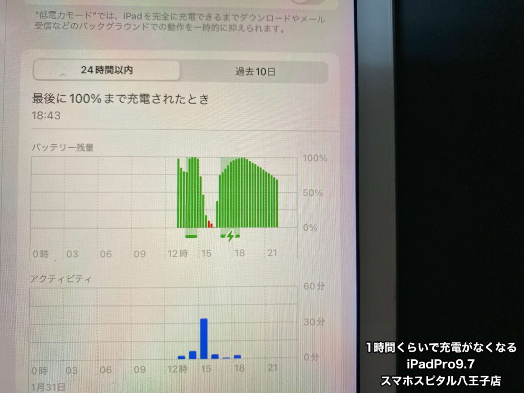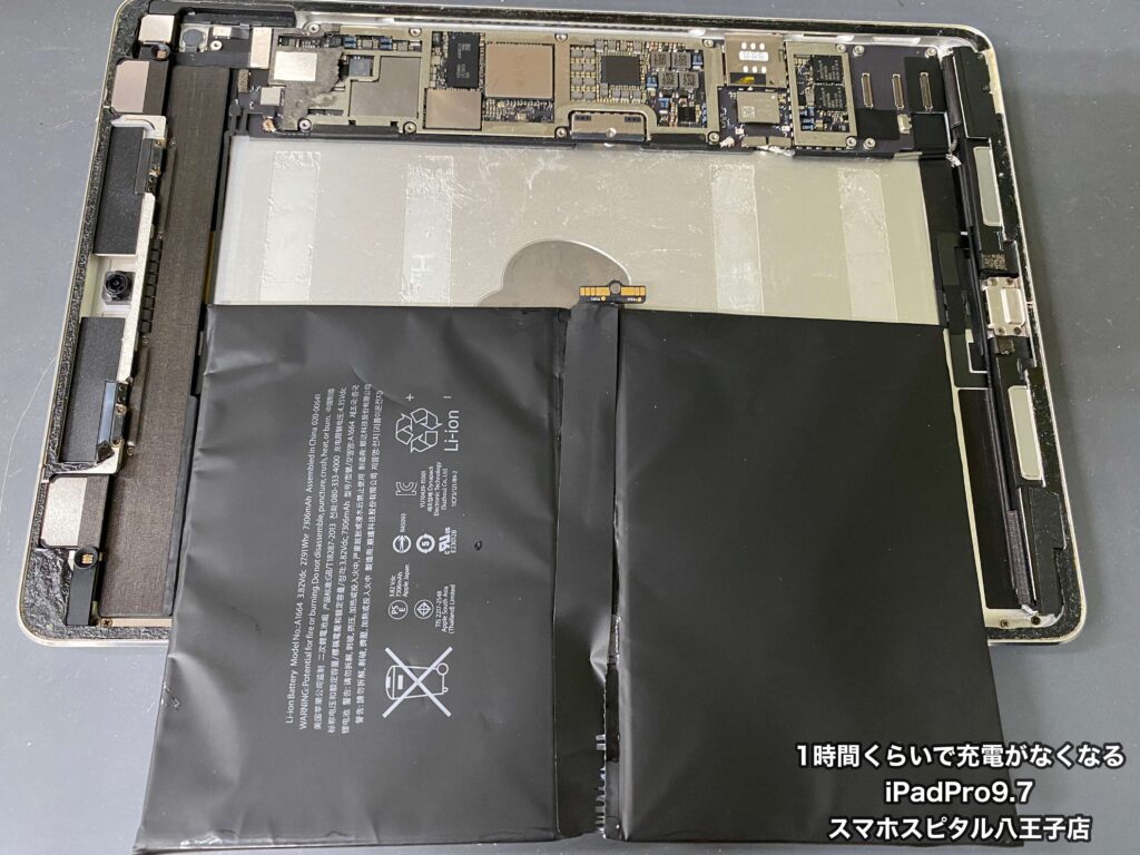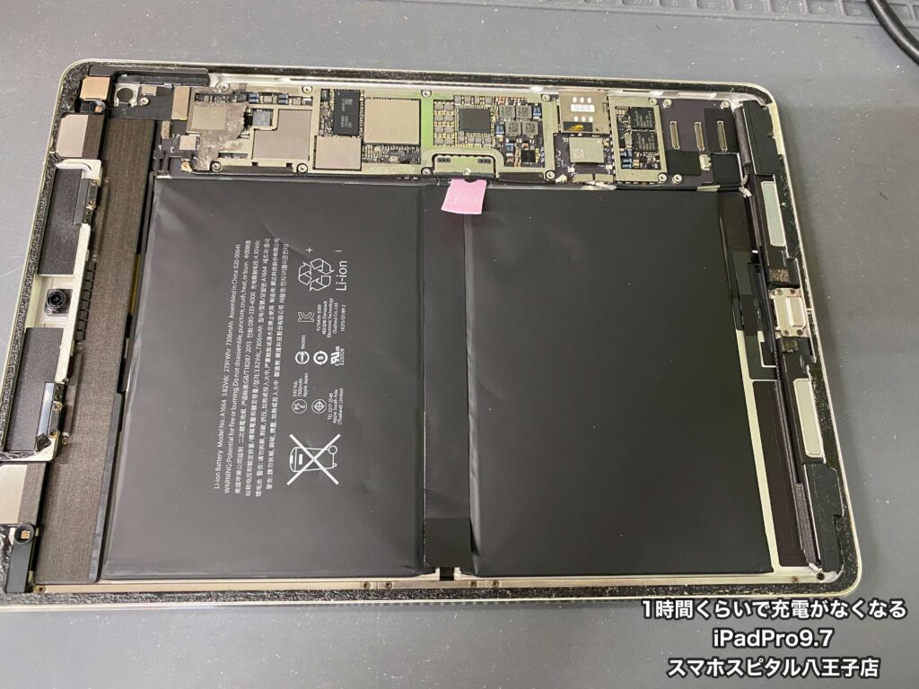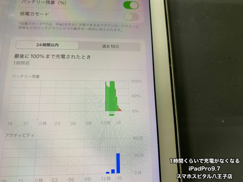 「100%充電があっても1時間くらいで0%になってしまう。」とiPadPro9.7を八王子市内在住のお客様にお持ち込みいただきました!!