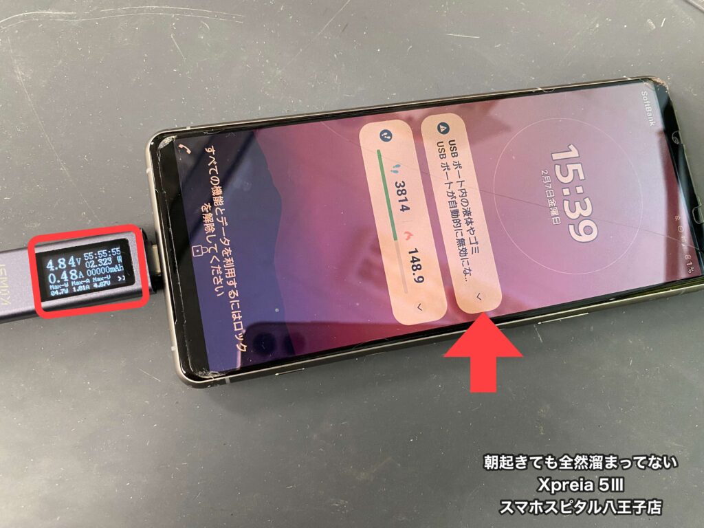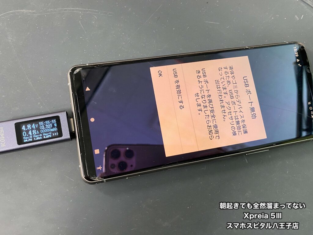 【Xperia5Ⅲ(A103SO)ドックコネクター交換】「USBポート内が汚れています」とエラーメッセージが発生…このままだと充電できないので交換修理して問題解決!!
