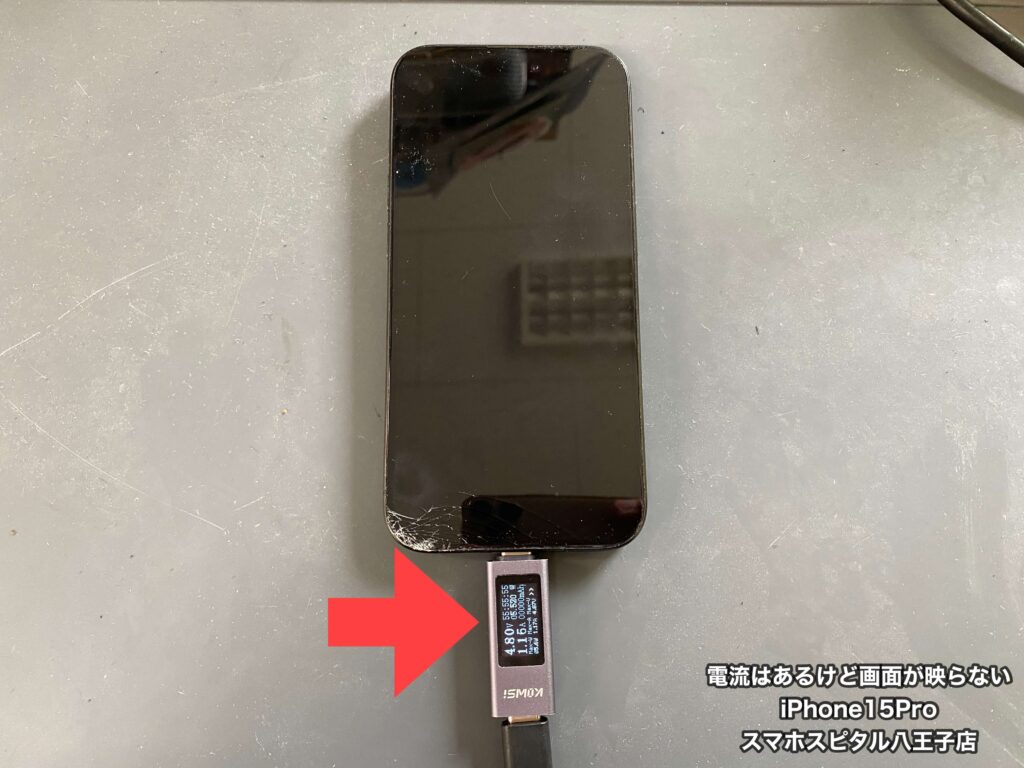 【iPhone15Pro 画面修理】液晶が割れて何も映らない…。音も鳴らないし電源も付かない…画面交換修理で改善できるのか検証してみます!!