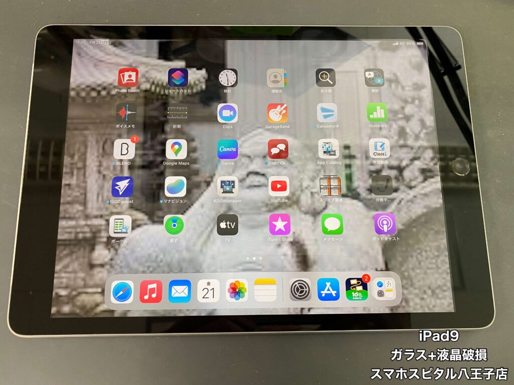 【iPad9 修理 八王子】落としてガラス画面と液晶画面どちらも破損してしまった…スマホスピタル八王子店はまとめて修理しちゃいます!!