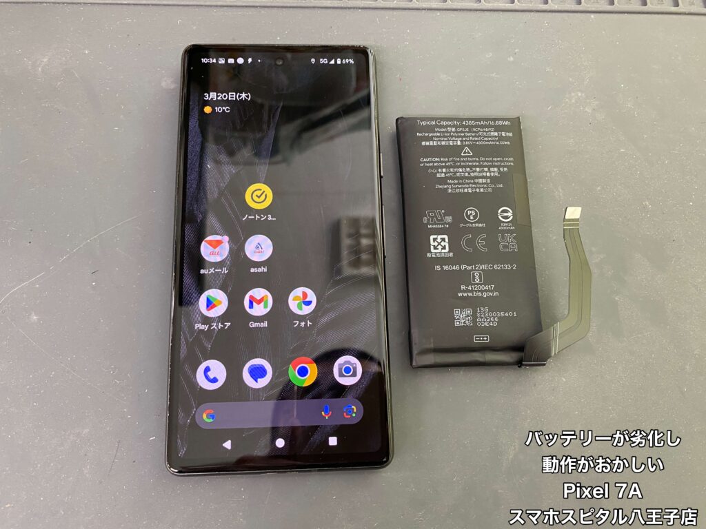 「充電してないと端末が使えない。」とPixel 7Aをお持ち込みいただきました。