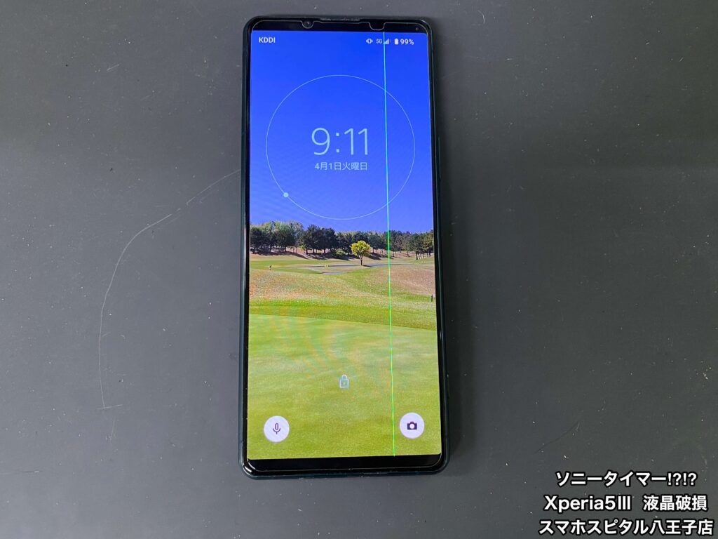 【Xperia 5Ⅲ 修理】使っていたら急に緑の線が画面に発生!?!?大切に使ってても不具合が発生してしまうことはあります…スマホスピタル八王子店へご相談ください。