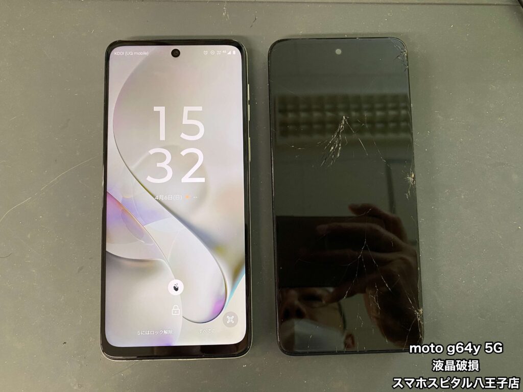 【MOTOROLA moto g64y 5G 修理】画面が割れてしまった!!問題なく使用できていたのに急に映らなくなった…データ移行もできない時はスマホスピタル八王子店にご相談ください!!