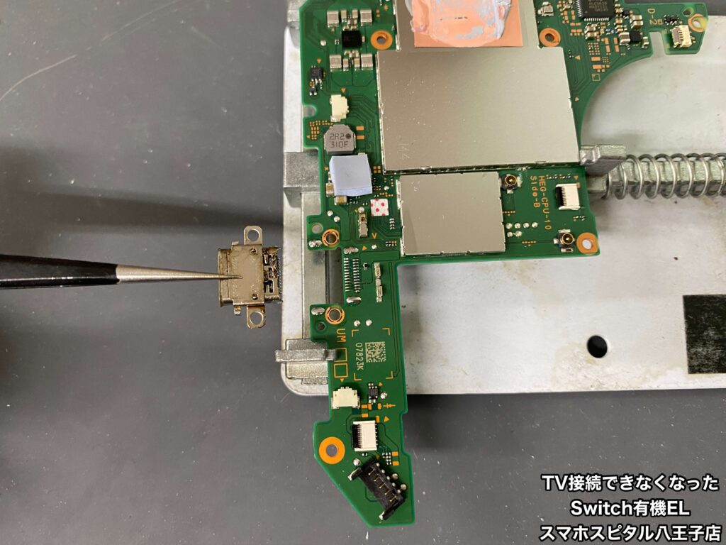 【Switch(有機EL) 修理】充電はできるのにTVに映らない…充電口のピン曲がり最短即日で修理対応しております!!スマホスピタル八王子店までご相談ください!