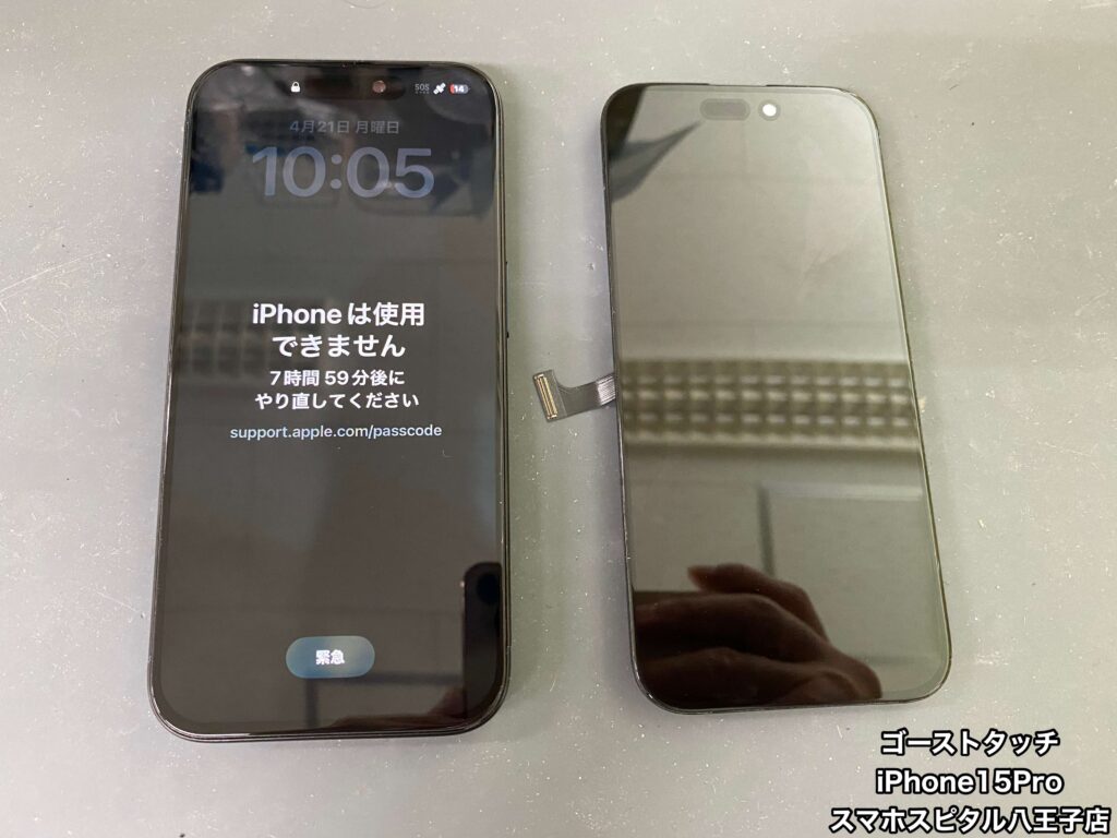 「iPhone15Proを落としてしまい、画面が割れて勝手にタッチ操作される」とご相談いただきました。
