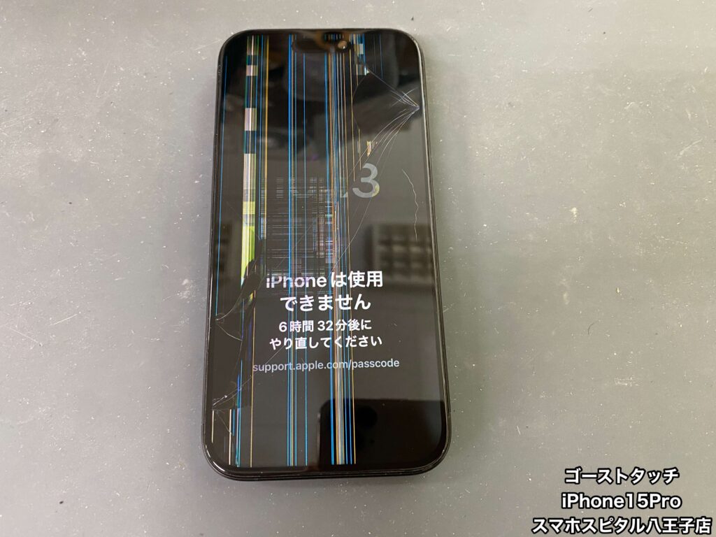 【iPhone15Pro 修理】ゴーストタッチで「iPhoneが使用できません、8時間」このままの放置したら最悪初期化しなくちゃいけなくなります!!その前に修理をしましょう!!