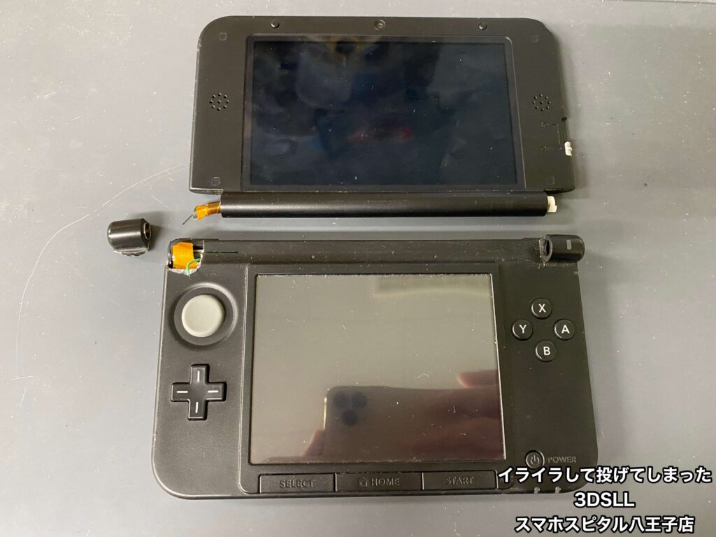【3DSLL 修理】壁に投げて本体が真っ二つに…電源が入り最低限操作できるまでの修理を行います!!ご相談はスマホスピタル八王子店まで!