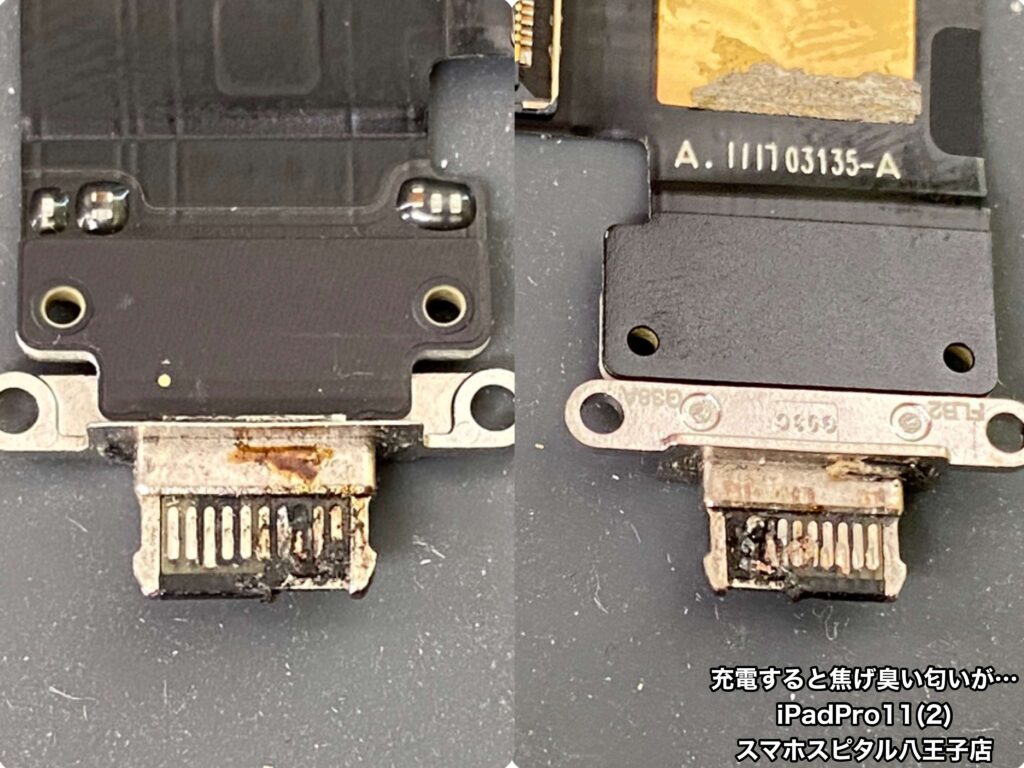【iPadPro11第2世代 修理】充電すると焦げた臭いがする!?端子がショートして黒くなってる!?ご相談はスマホスピタル八王子店へ!!