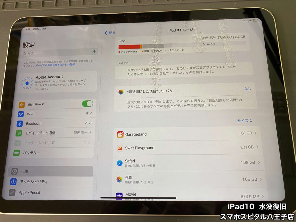 【iPad10 修理】水没したら「電源オフ」「充電しない」「乾燥させる」!!ご相談はスマホスピタル八王子店まで!!