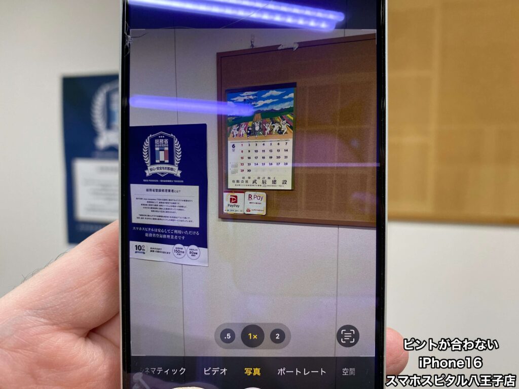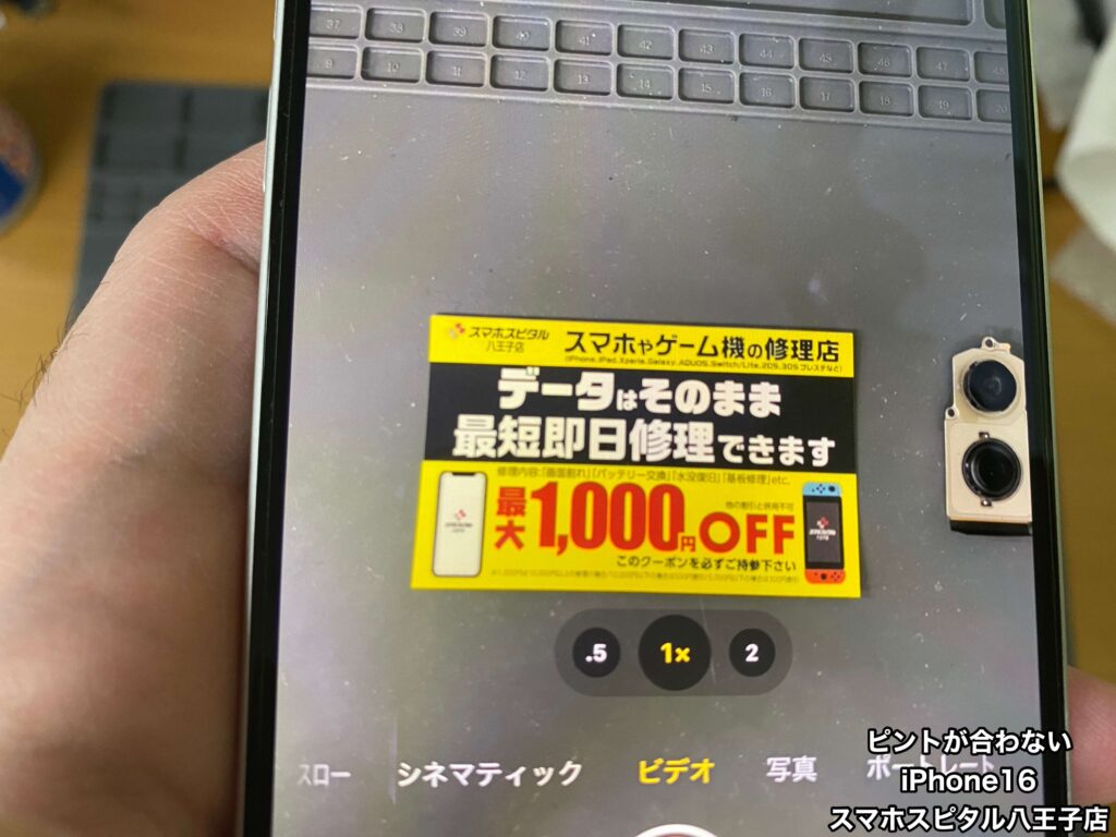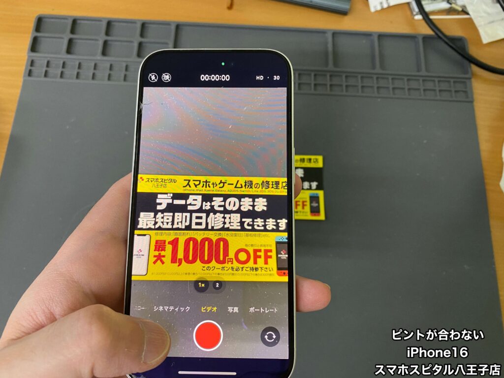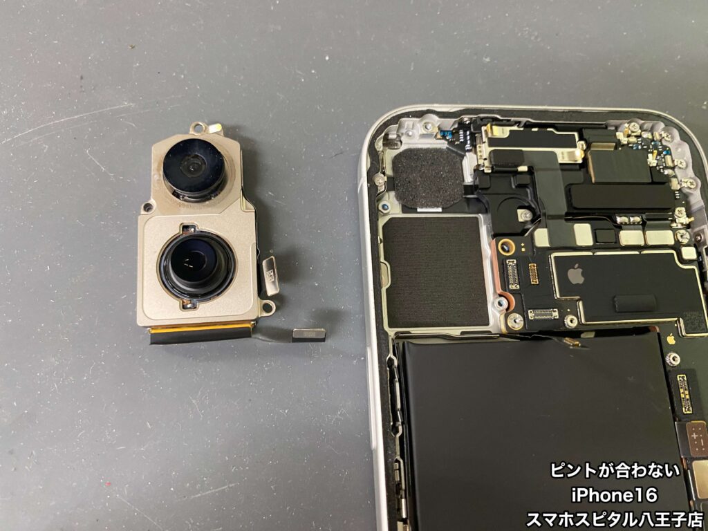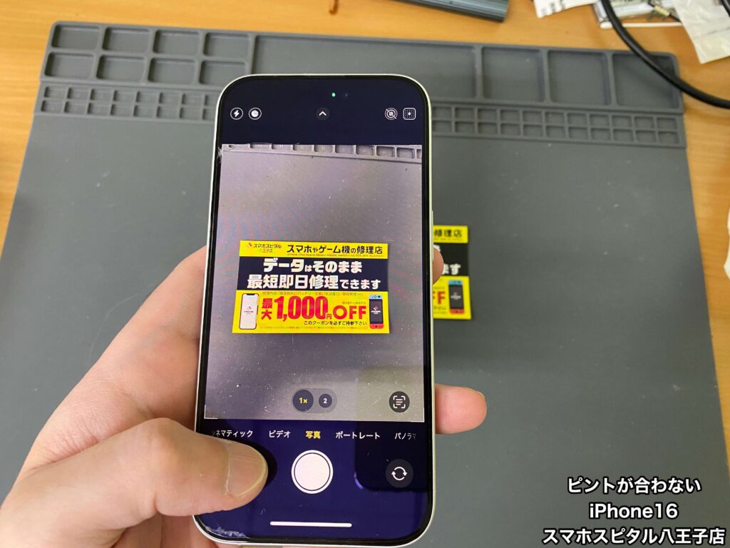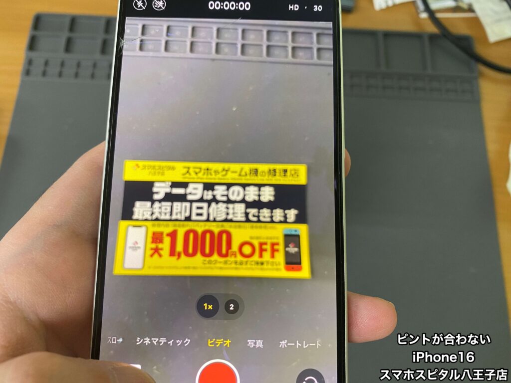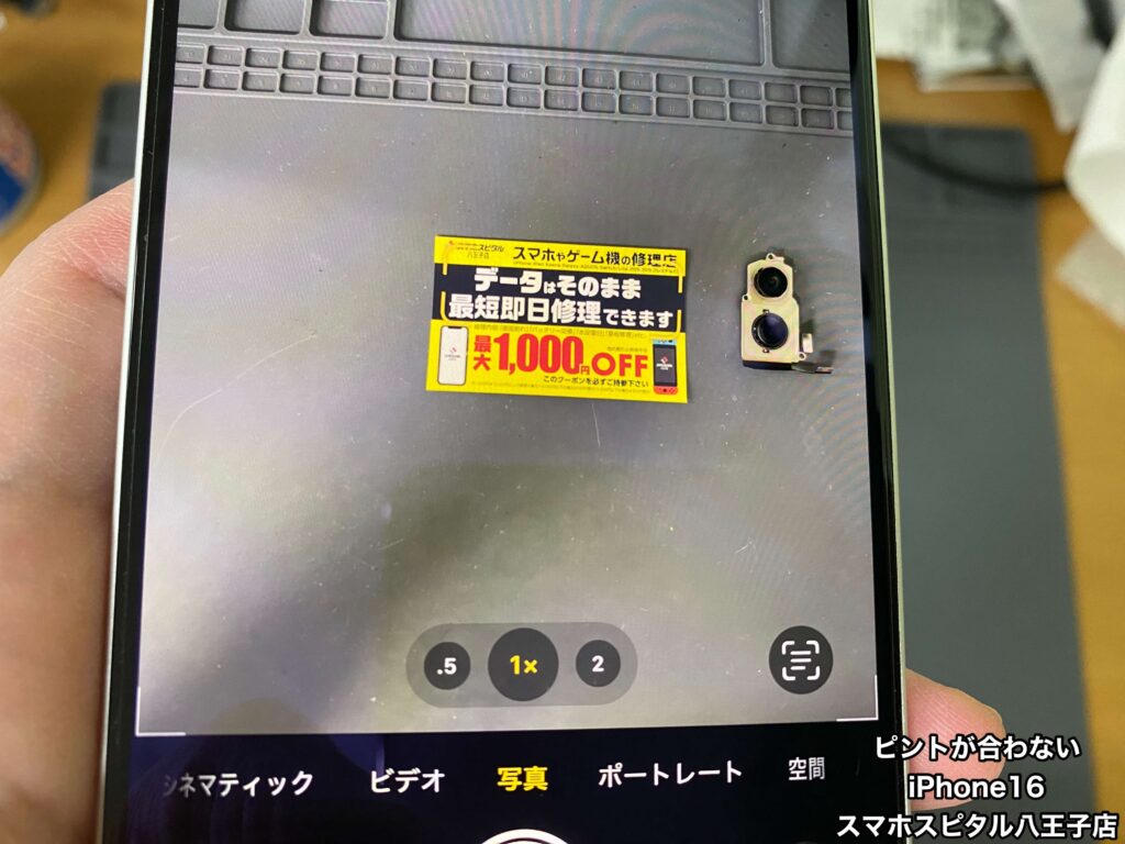【iPhone16 カメラ修理】近くのピントは合うのに15センチくらい離すとピントが合わない。ご相談はスマホスピタル八王子店へ!!