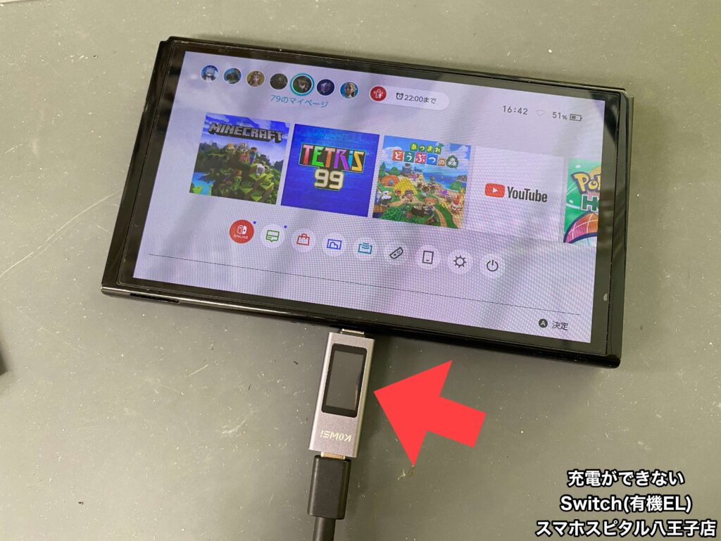 【Switch(有機EL) 修理】難易度高め!?この修理ができる方を当店にスカウトしたいくらい!!充電できない端末のご相談はスマホスピタル八王子店へ!
