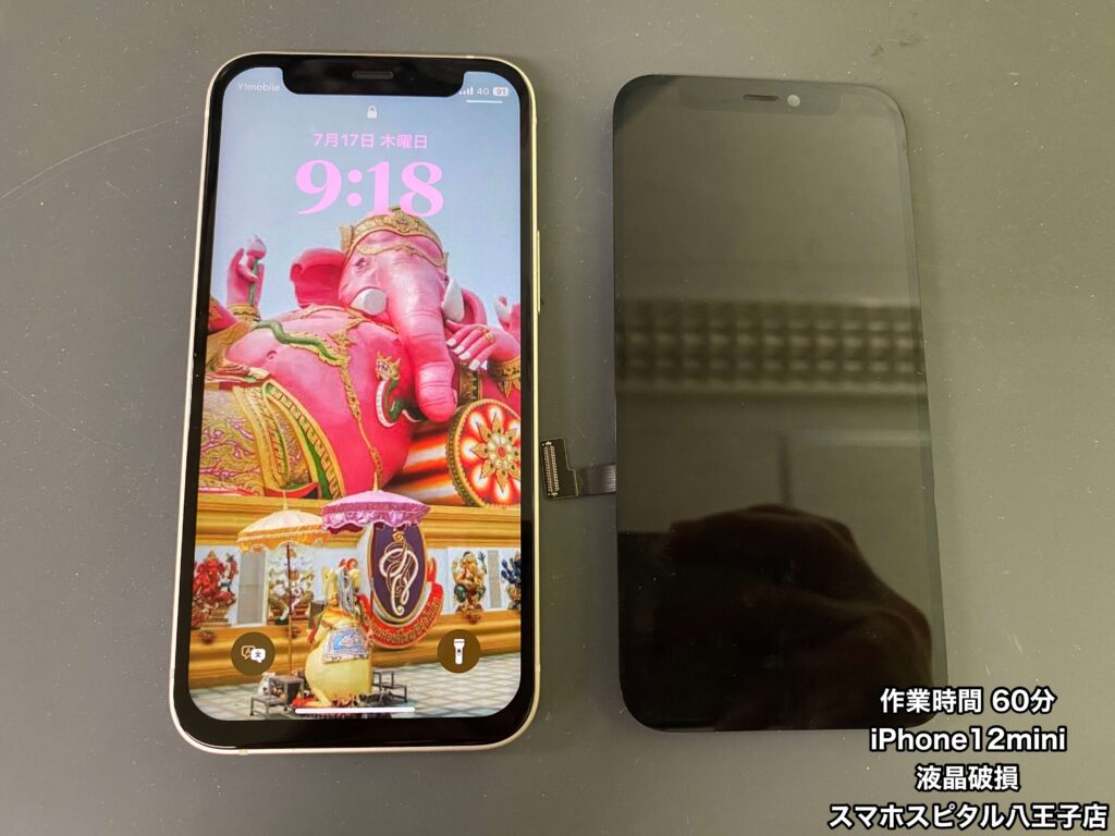 「使ってたら突然液晶に不具合が起きた」とiPhone12miniをお持ち込みいただきました。