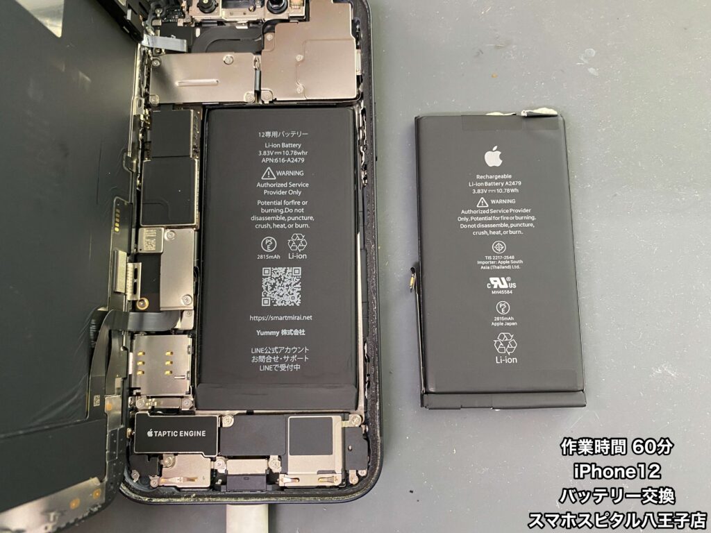 「4年使用して最近バッテリーの減りが早い。」とiPhone12をお持ち込みいただきました。