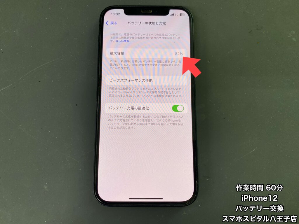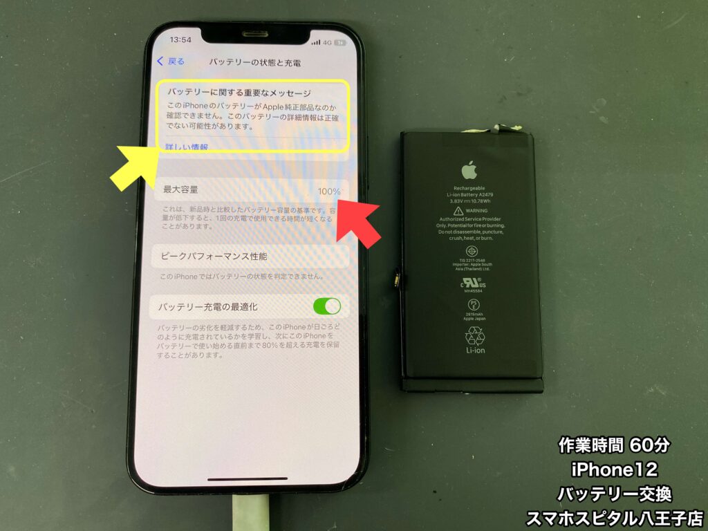 【iPhone12 修理】4年間大切に使用してたけどバッテリーの減りが気になってきた…バッテリーの最大容量は何%ですか?修理のご相談はスマホスピタル八王子店へ!