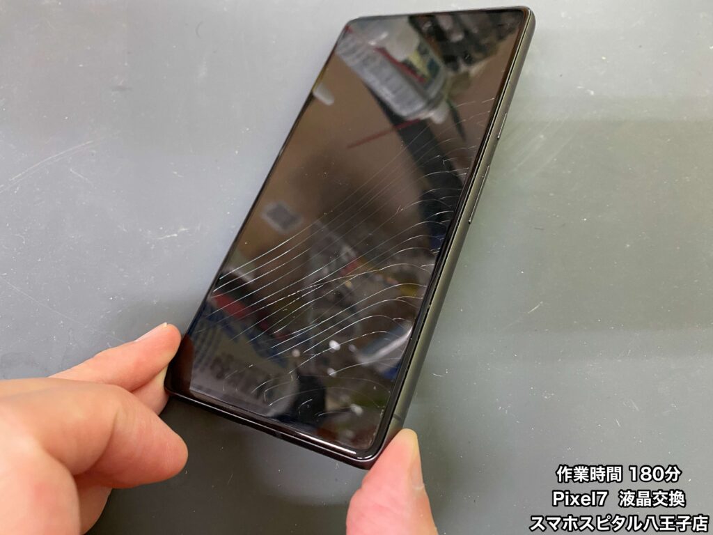 【Pixel7 修理】落としてから音は鳴るのに画面は真っ暗!!よく見ると液晶にヒビが!!飛び込み修理はスマホスピタル八王子店へ!!