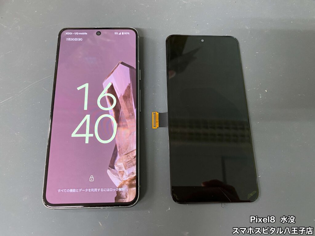 【Pixel8 修理】バイブは鳴る、Suicaも使用できるのに画面が真っ暗のまま…水没修理のご相談はスマホスピタル八王子店へ!!