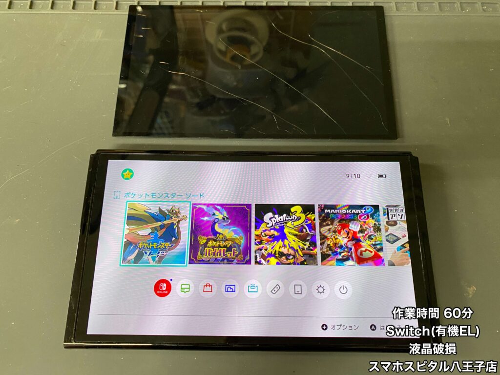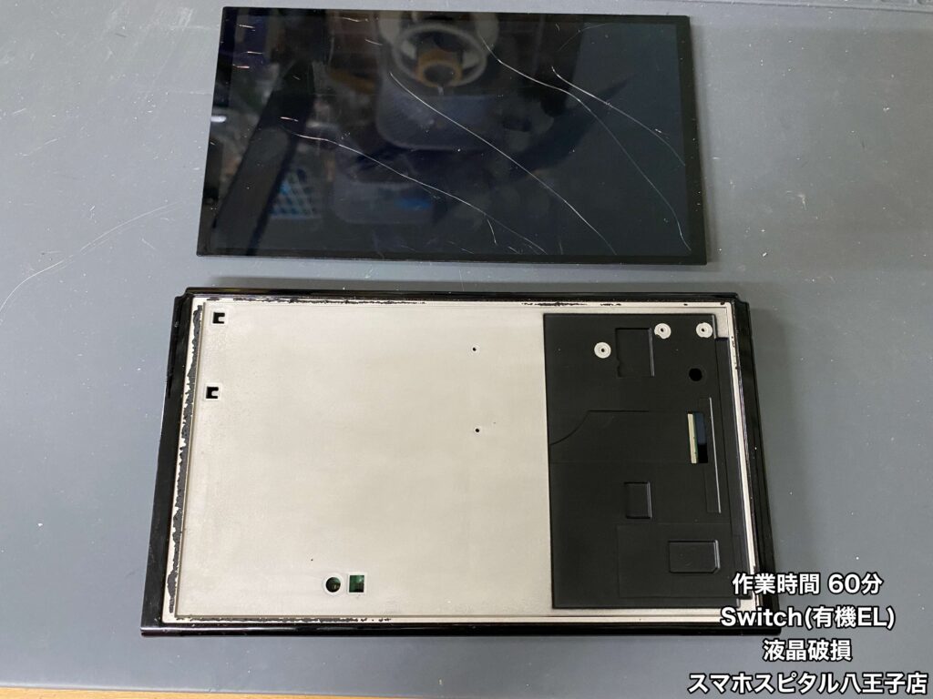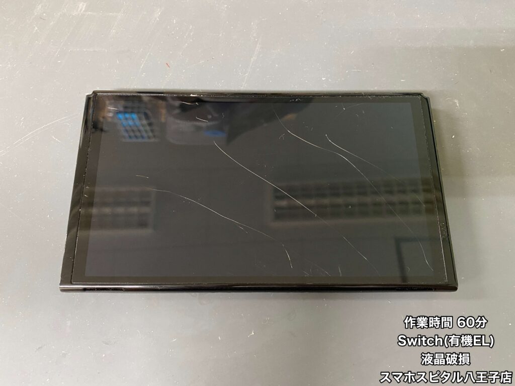 【Switch(有機EL) 修理】子供が使用するゲーム機が映らなくなっちゃった…よく見ると液晶にひび割れが…即日で修理可能です!ご相談はスマホスピタル八王子店へ!