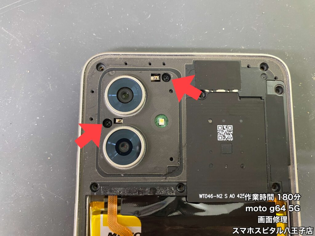 背面から分解する端末で、カメラレンズの下にもネジがあるよ!!