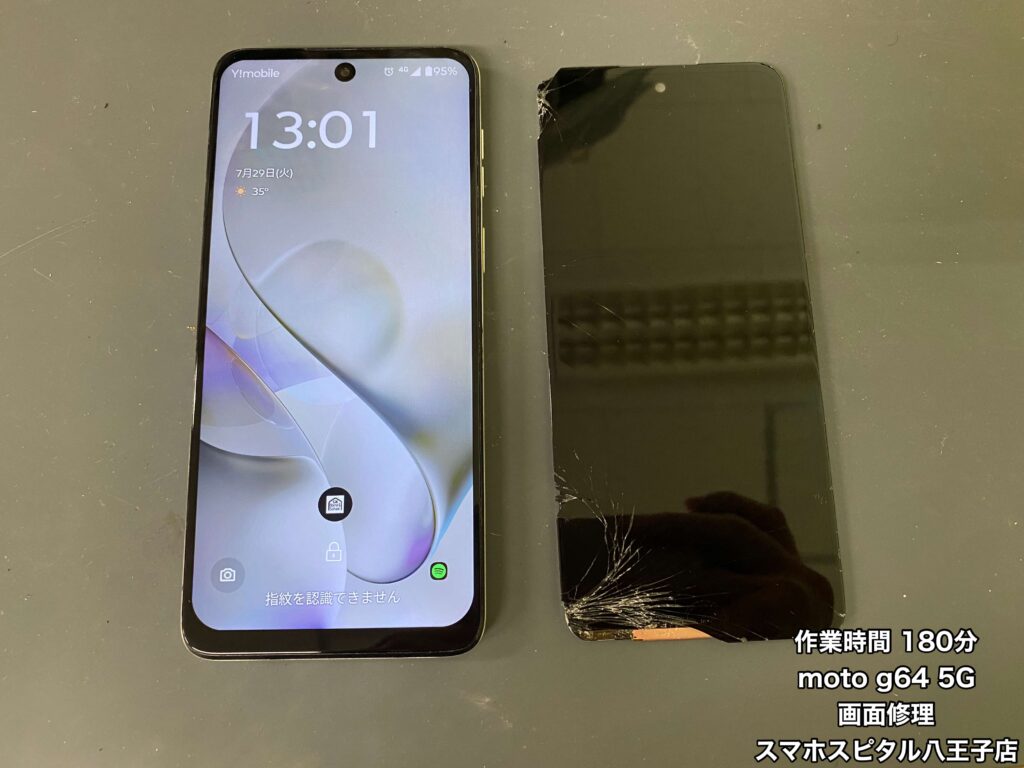 【MOTOROLA moto g64y 5G 修理】画面が割れてしまった!!問題なく使用できていたのに急に映らなくなった…データ移行もできない時はスマホスピタル八王子店にご相談ください!!