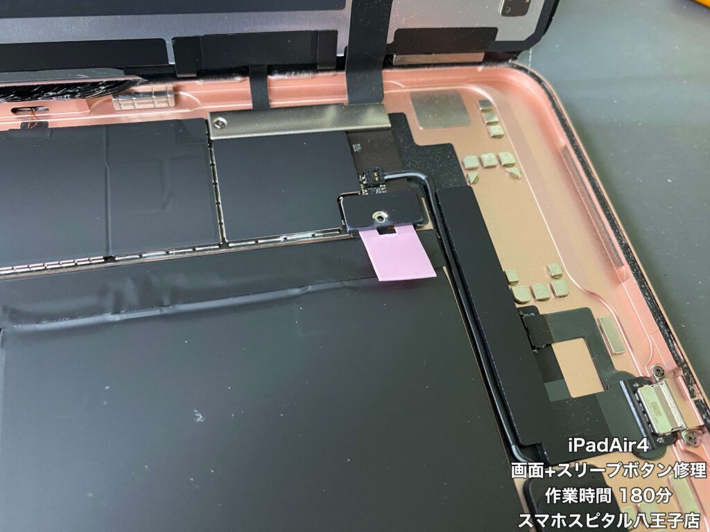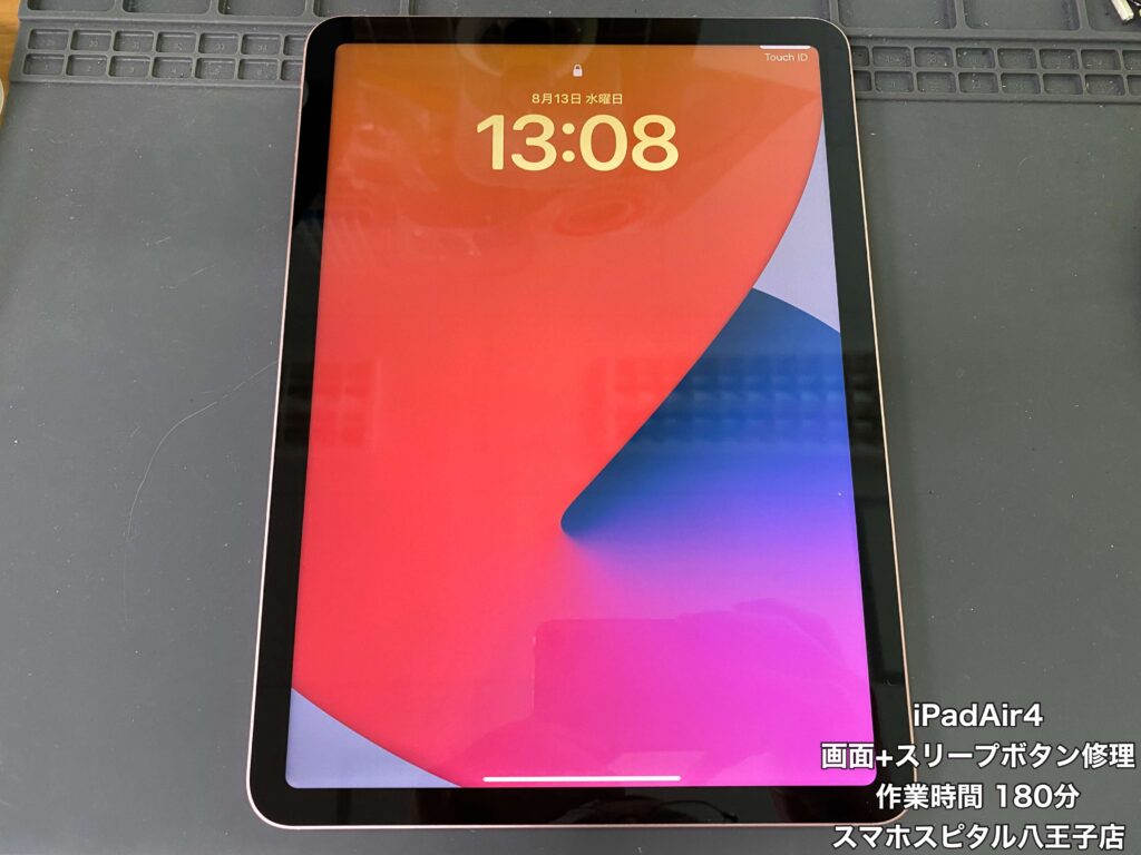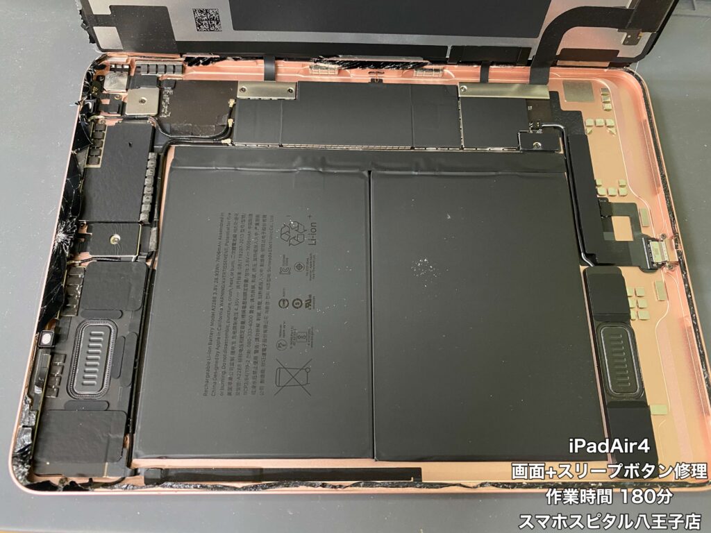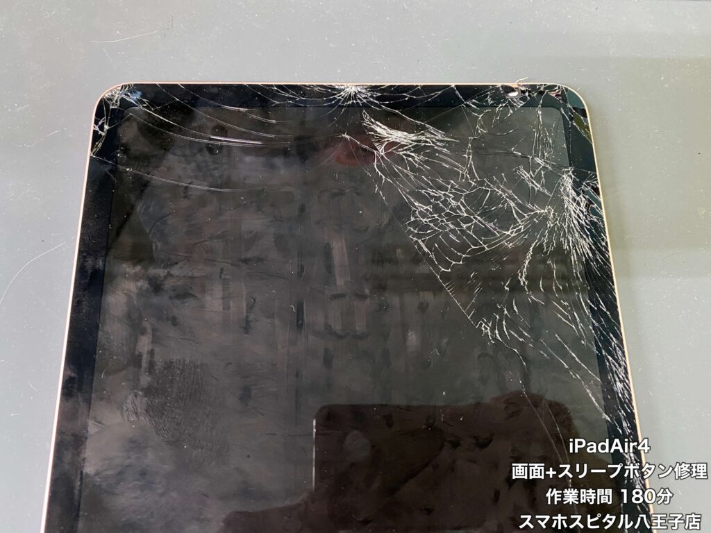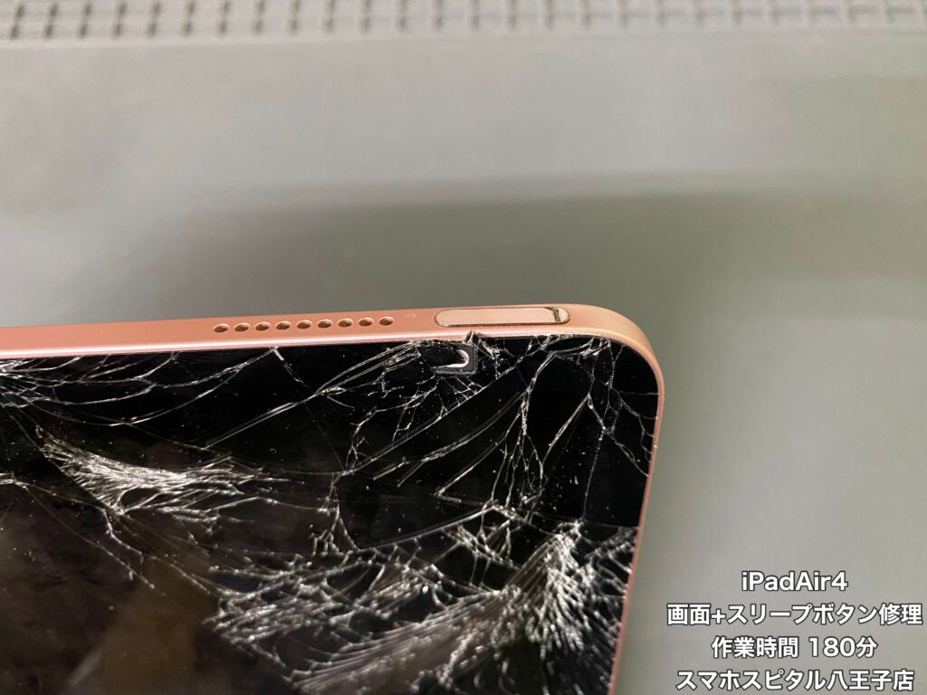 【iPadAir4 修理】画面がバキバキに割れた。スリープボタンも押し心地ない…使用するのに不便なのでまとめて修理します!!ご相談はスマホスピタル八王子店まで!!