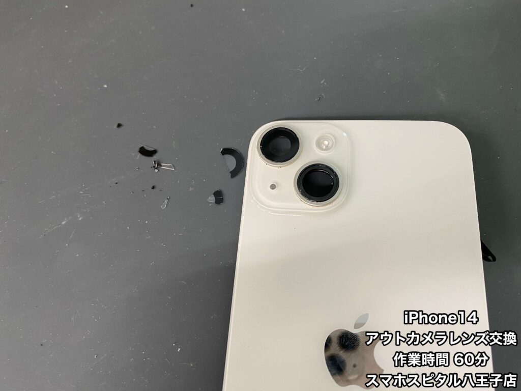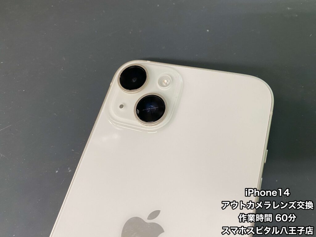 【iPhone14Plus 修理】落としてカメラレンズが割れちゃった…八王子に行くついでに修理!!ご相談はスマホスピタル八王子店へ!!