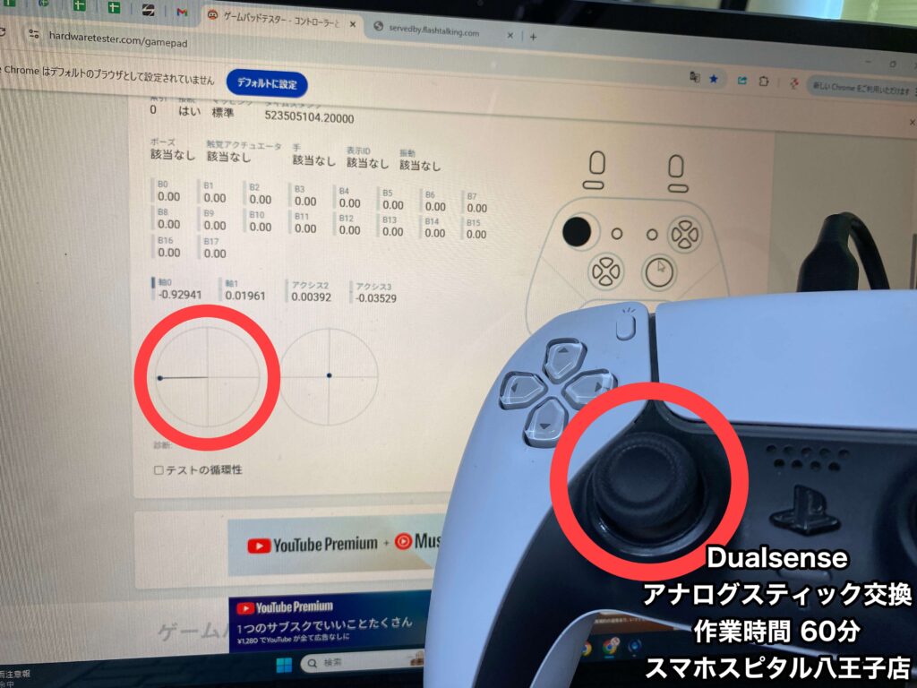PS5のコントローラー Dualsense 左アナログスティック修理