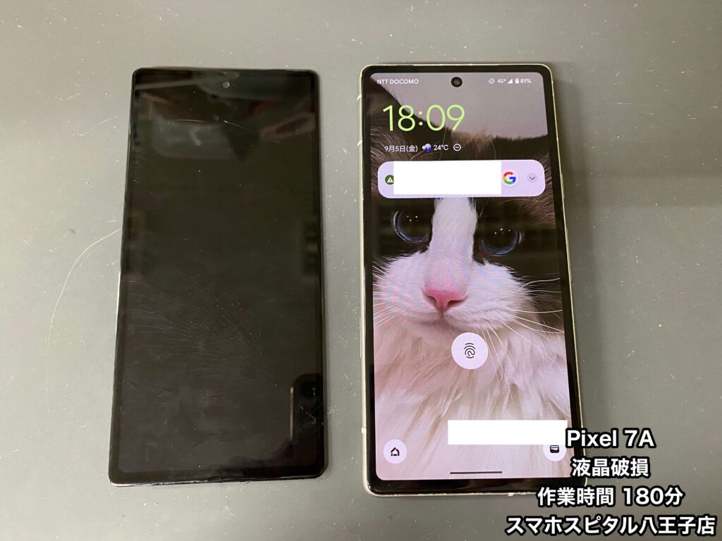 【Pixel 7a 修理】画面が全く映らないのに通知音は鳴る!!通知が気になるから早く修理してほしい!!ご相談はスマホスピタル八王子店へ!!
