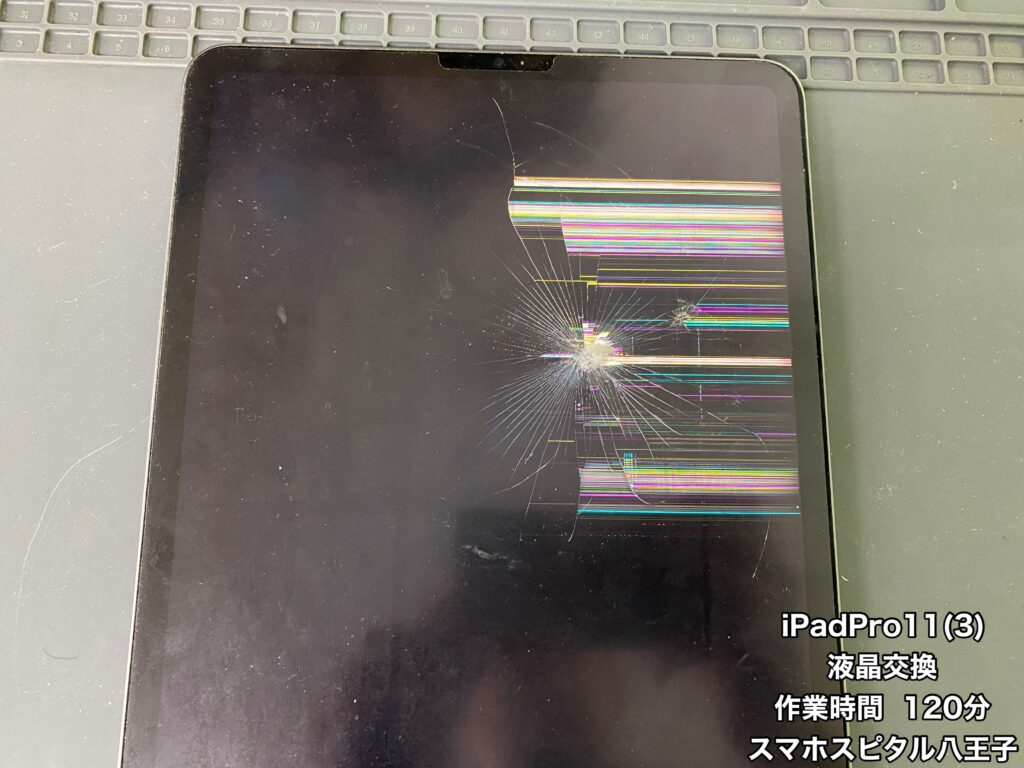 【iPadPro11(3) 修理】ドアノブにぶつけて画面が割れた…映像も変になった…iPadの即日修理はスマホスピタル八王子店へ!!