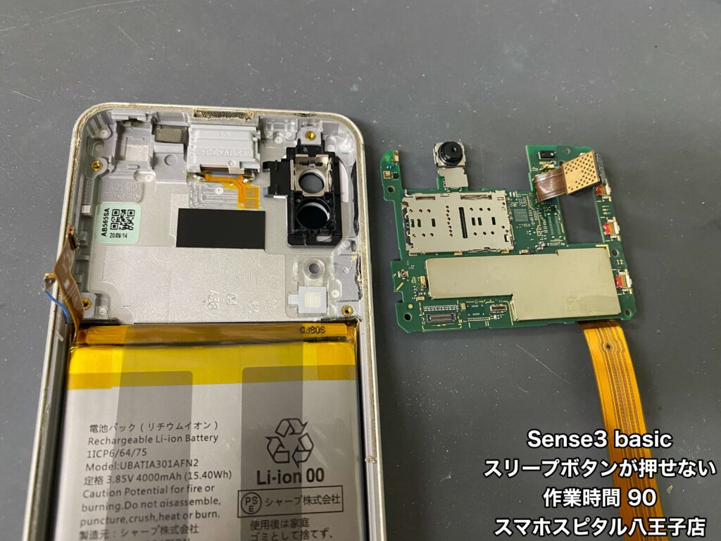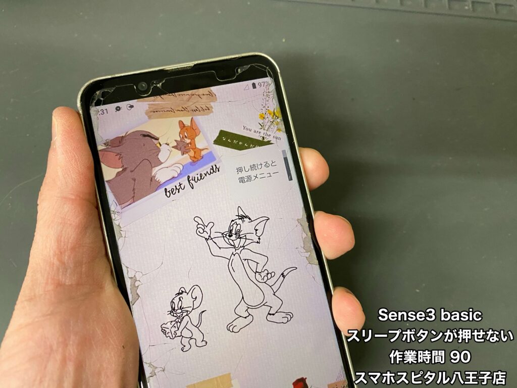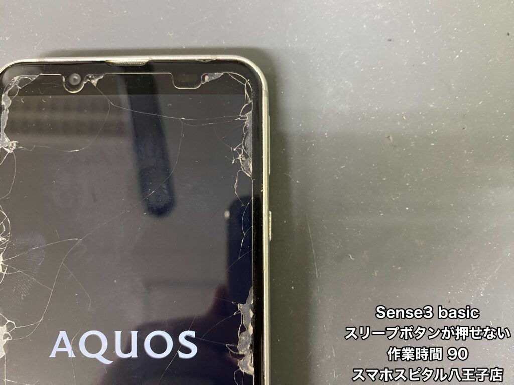 【AQUOS sense3 basic(SHV48 )修理】スリープボタンが押せず電源を入れることができない。ボリュームボタンも同様の症状が…!!ご相談はスマホスピタル八王子店まで!!