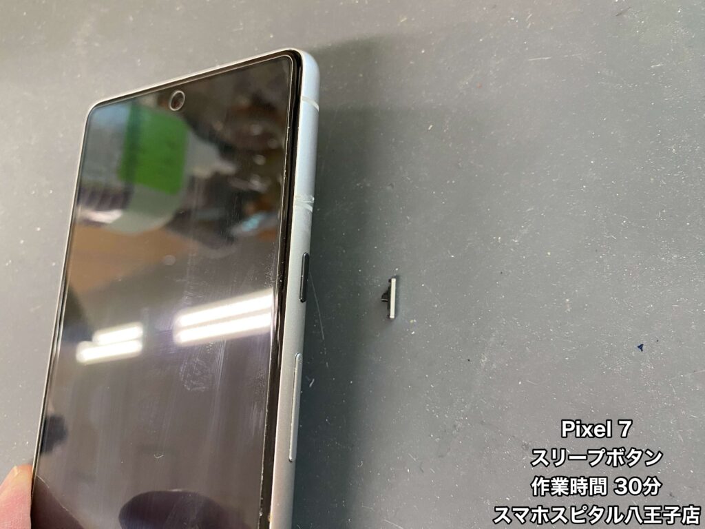 【Pixel 7 修理】スリープボタンが取れてしまった。爪部分が劣化で破損し取れてしまうことがあります。修理のご相談はスマホスピタル八王子店へ!!