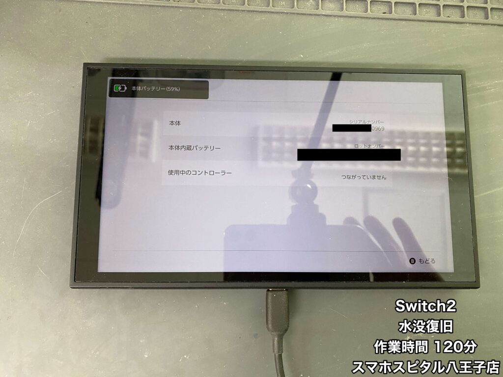 【Switch2 水没復旧修理】お風呂で使用して水没…画面が暗くなって電源が入らなくなった。修理のご相談はスマホスピタル八王子店へ!!