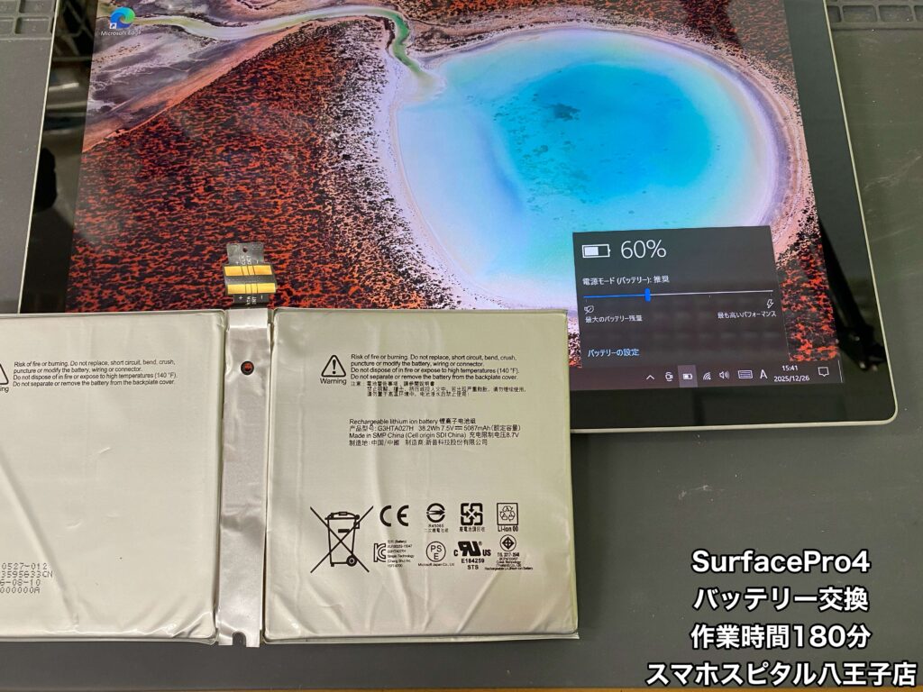 【Surface Pro4 修理】充電しながらなら使用できるけどケーブルを抜くと電源が落ちる。修理のご相談はスマホスピタル八王子店へ!!