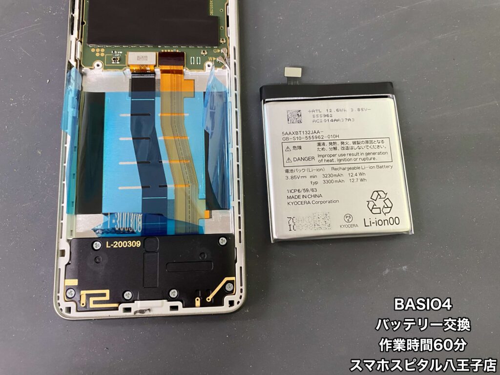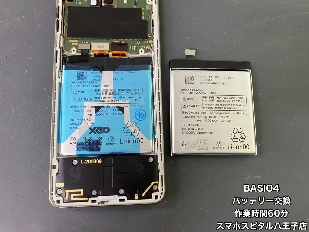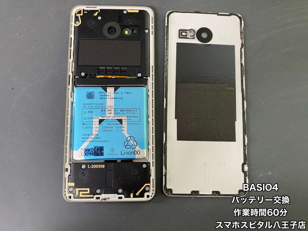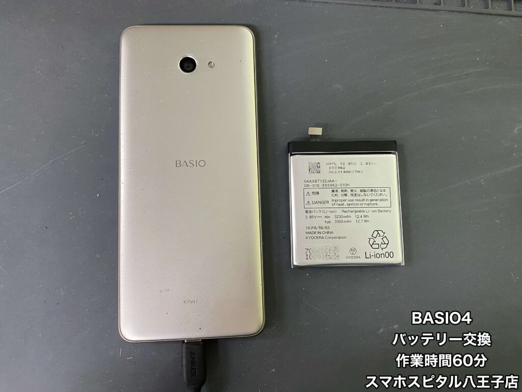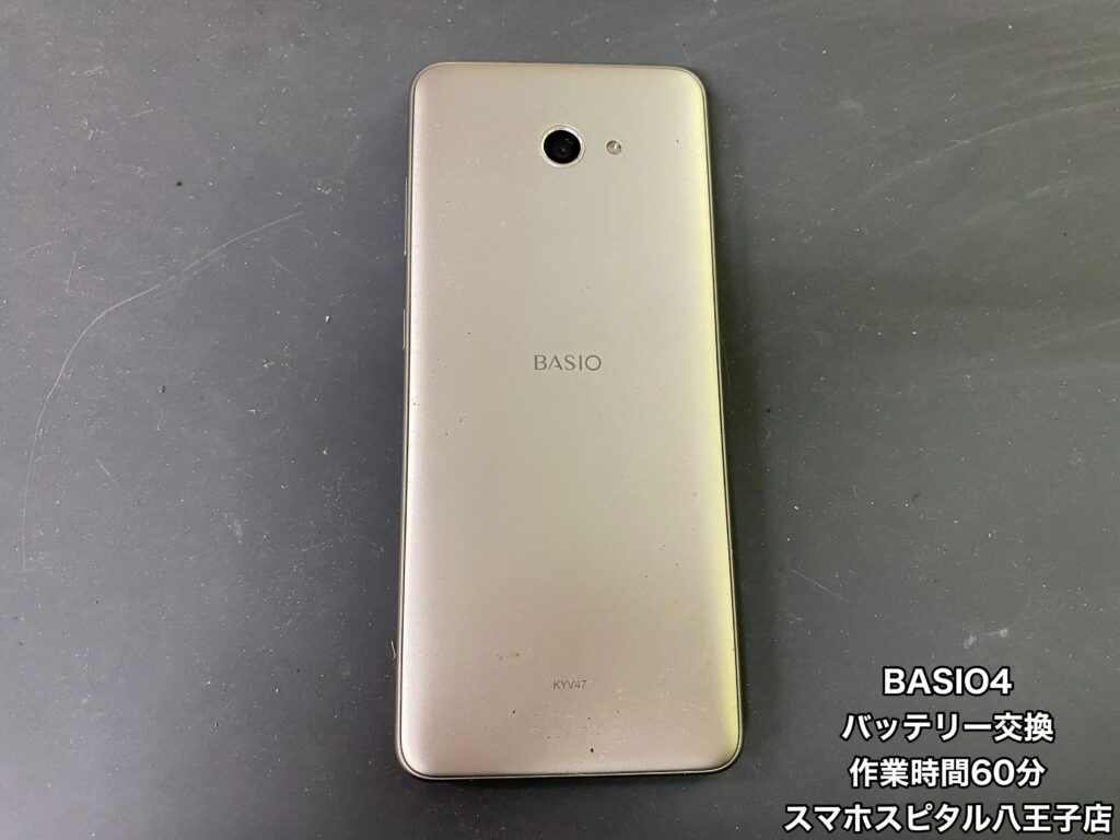 【BASIO4(KYV47)修理】朝100%に充電してもお昼には半分くらいになって夜には電源が落ちることも…データ移行するよりバッテリー交換して使い慣れた端末をまだまだ使用したいという方はスマホスピタル八王子店へ!