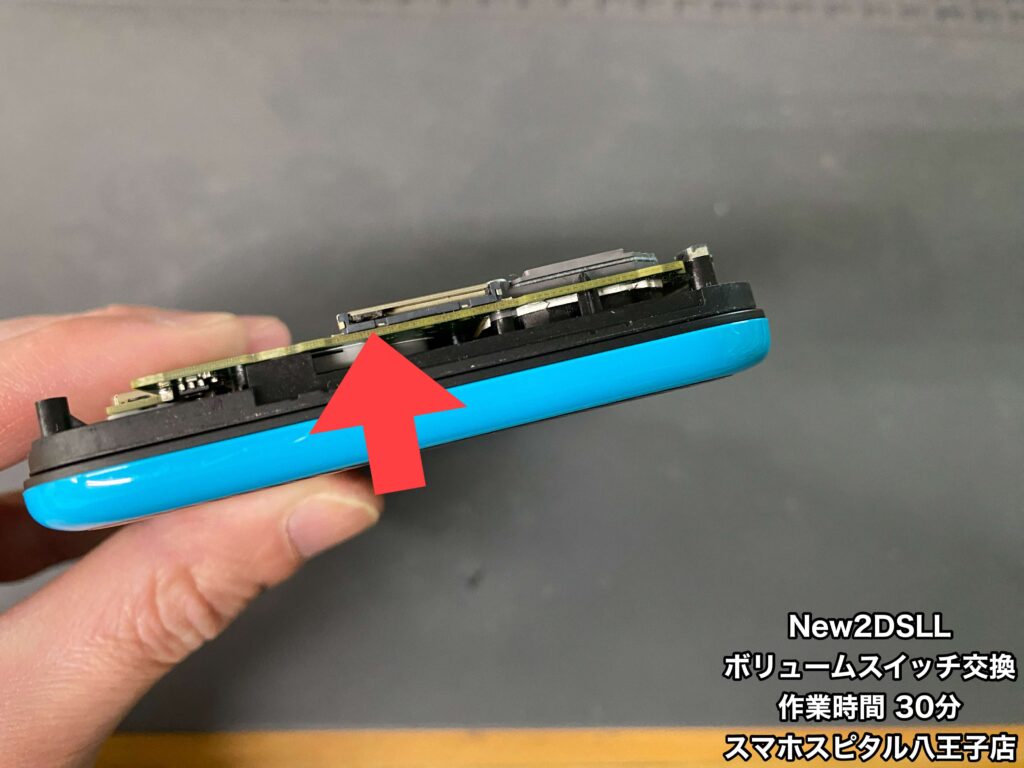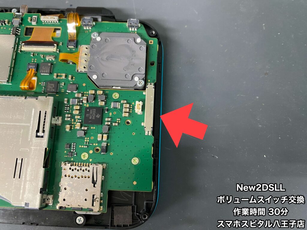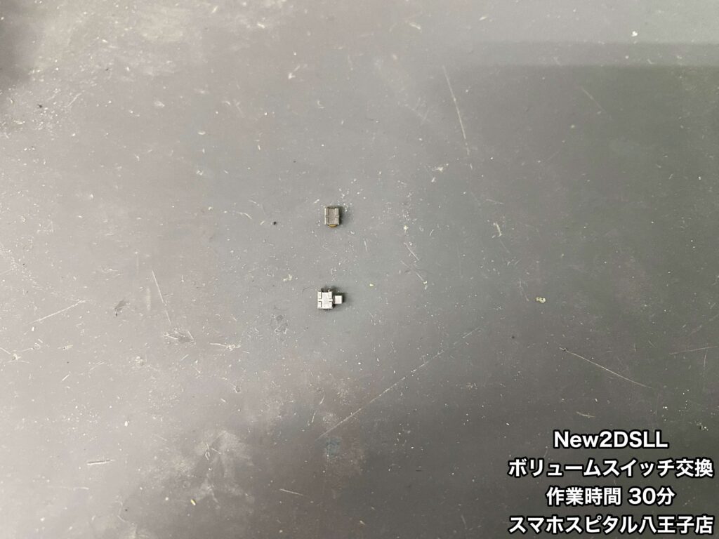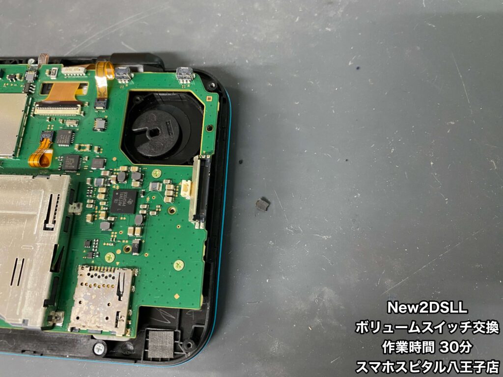 【New2DSLL 修理】ボリュームスイッチのつまみが折れてしまった。この状態だと音量の上げ下げができないので修理が必要です!ご相談はスマホスピタル八王子店へ!