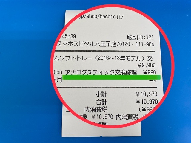 ソフトトレーの修理費用が9.980円でアナログスティックが990円