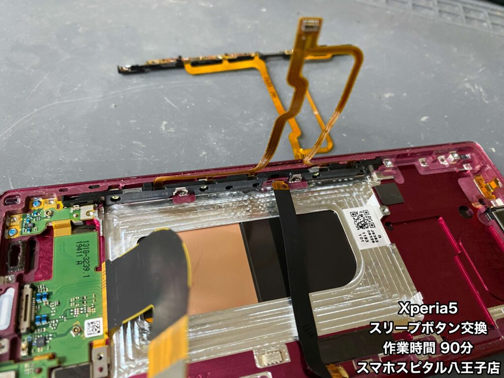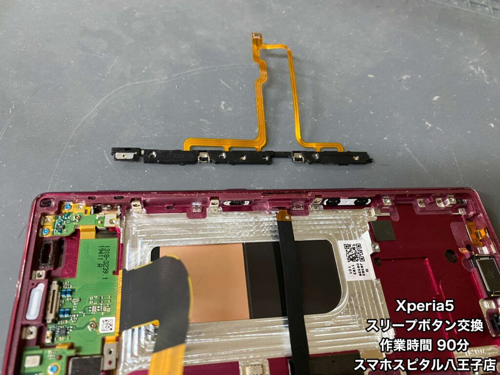 基板とバッテリーを外さないとスリープボタンは交換できません。