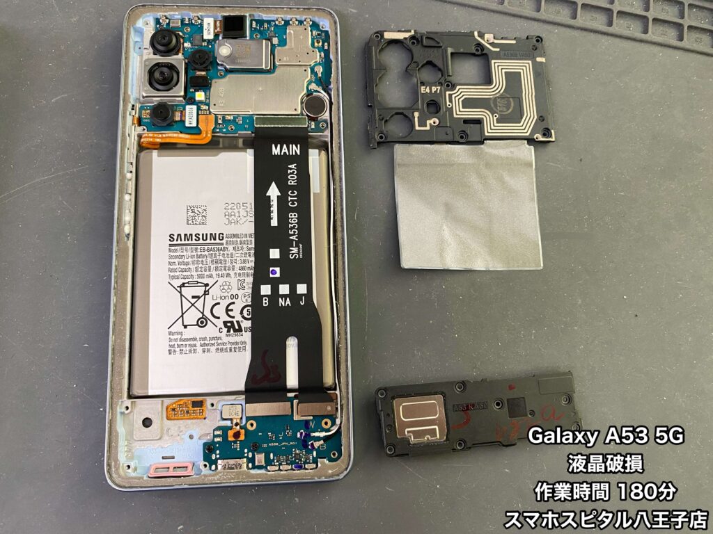 ▲液晶画面を取り外したGalaxy A53 5G