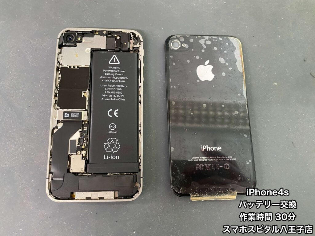 【iPhone4s 修理】バッテリーが一気に膨張!!背面も浮いて破裂寸前!?即日修理はスマホスピタル八王子店へ!!
