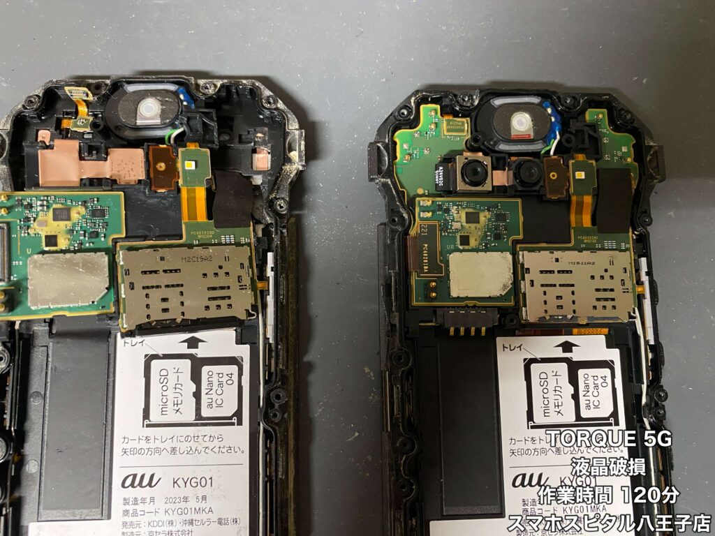 ただ、TORQUEは画面パーツのみの仕入れができないので、同じ端末を用意し基板を移植する修理方法となります。