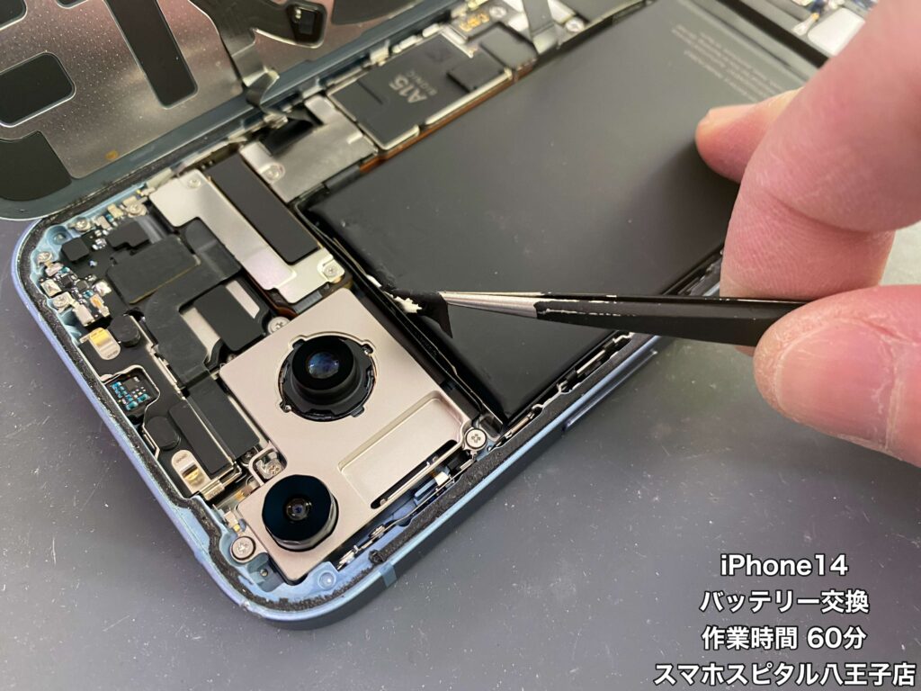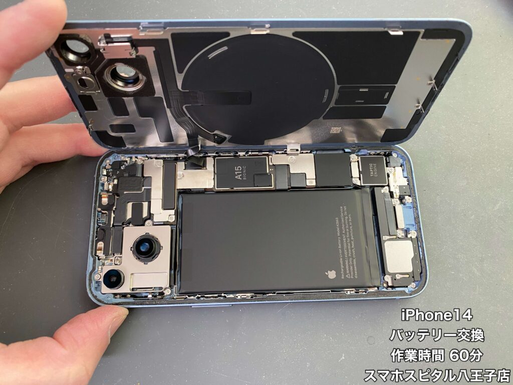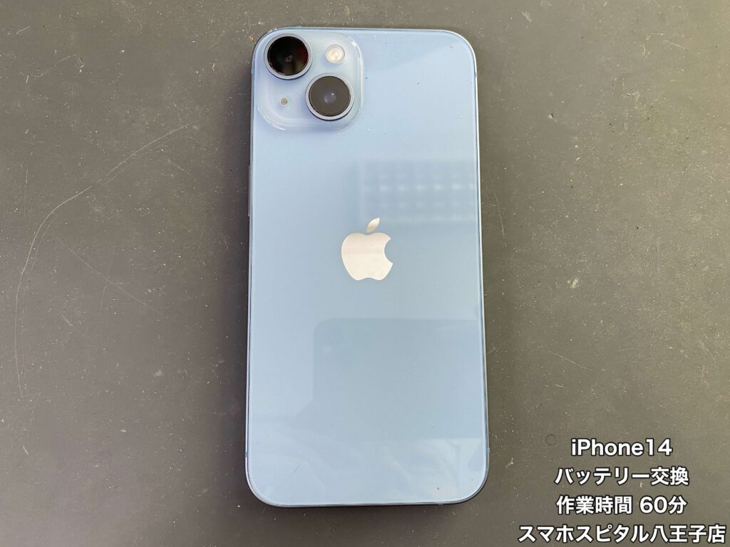 【iPhone14 修理】バッテリーの減りが気になるiPhone14のバッテリー交換を行いました!!修理のご相談はスマホスピタル八王子店へ!!