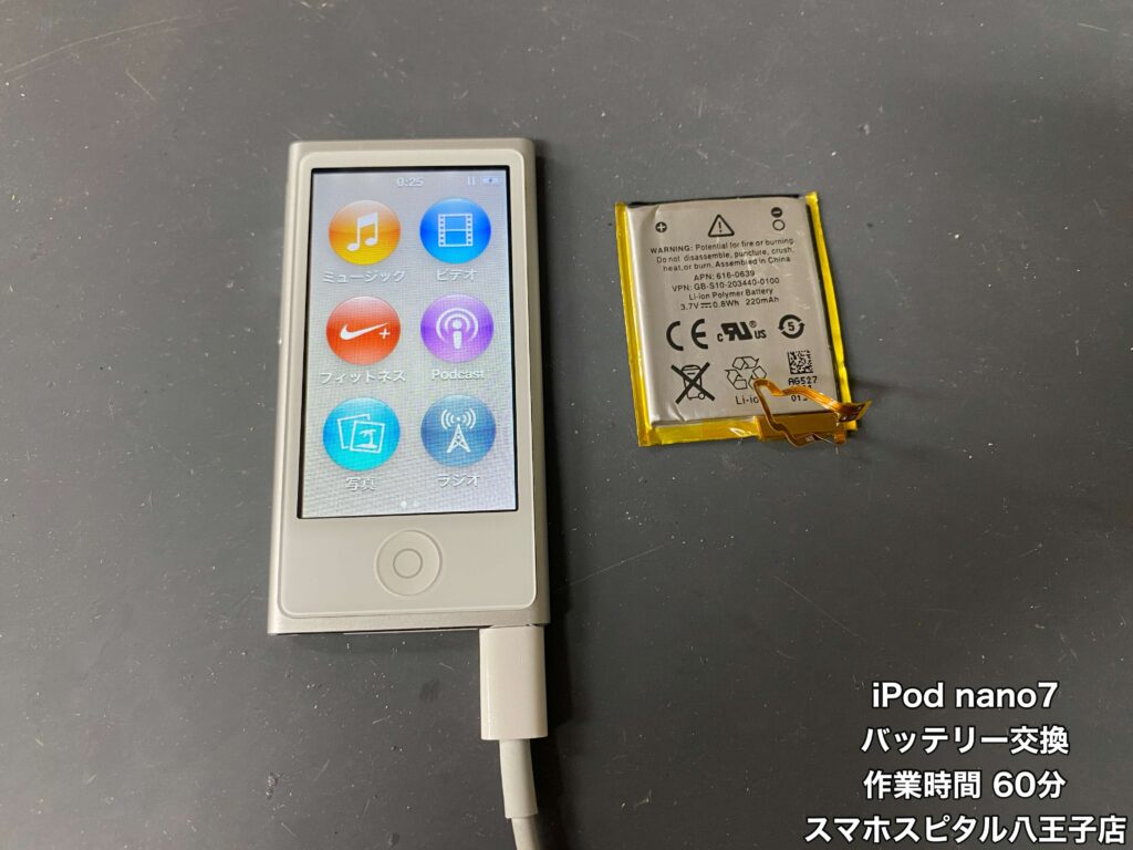 【iPod nano 第7世代 修理】バッテリーの減りが早く感じるようになった…バッテリーの交換修理は即日修理で対応しております!!ご相談はスマホスピタル八王子店へ!!