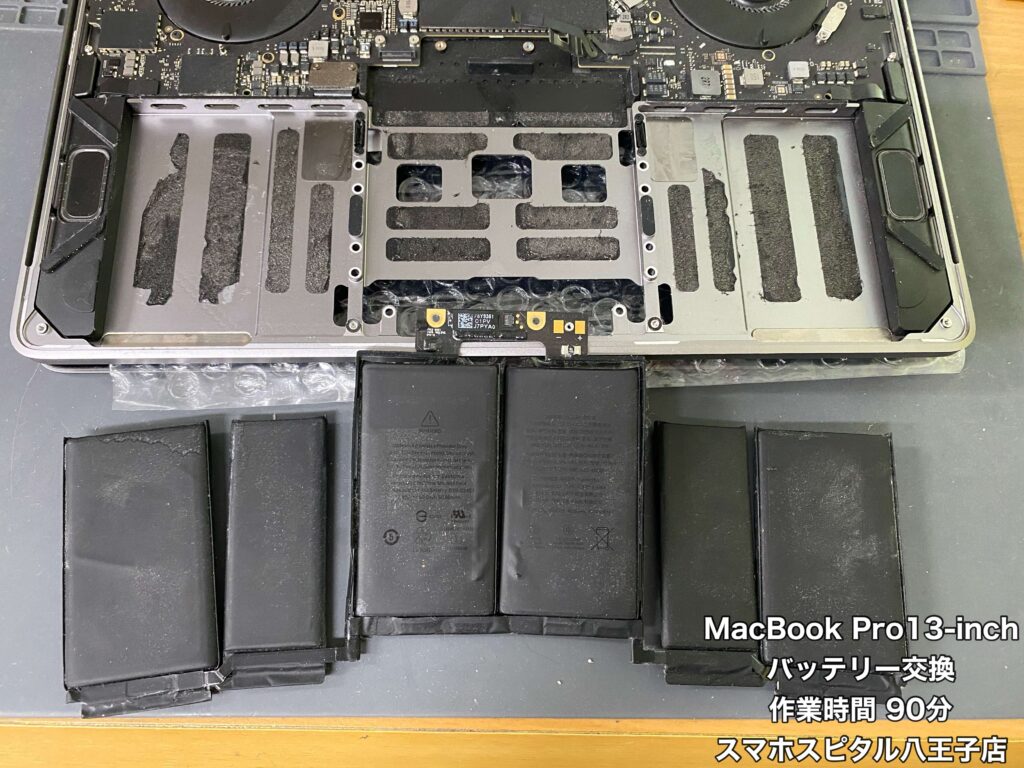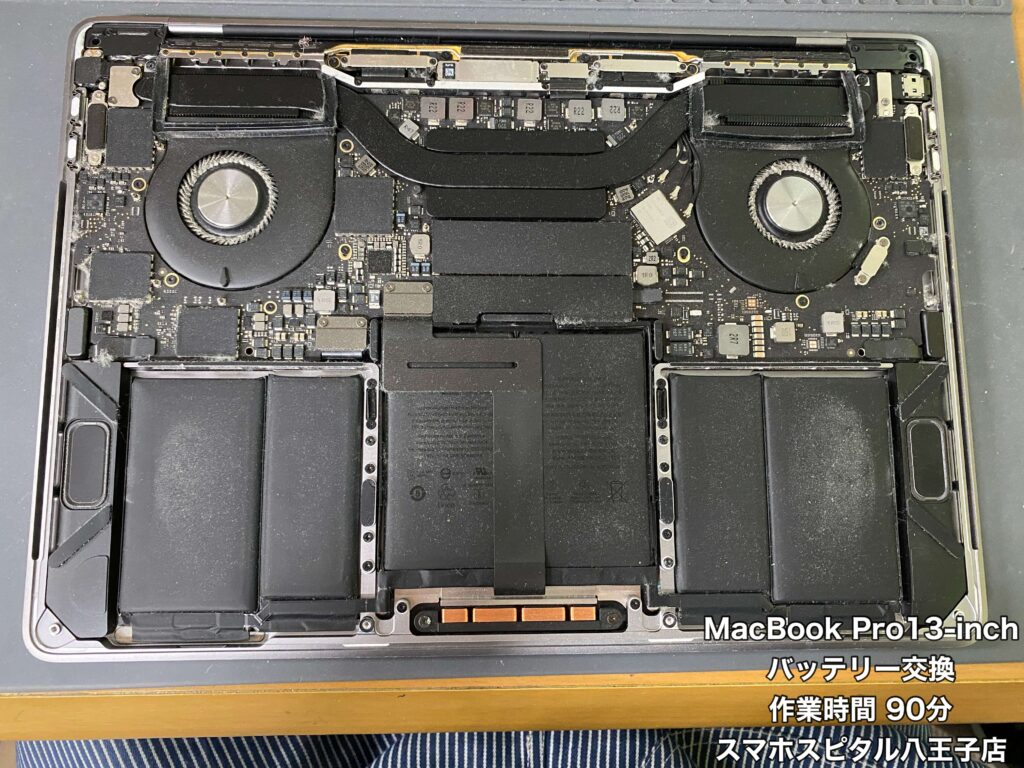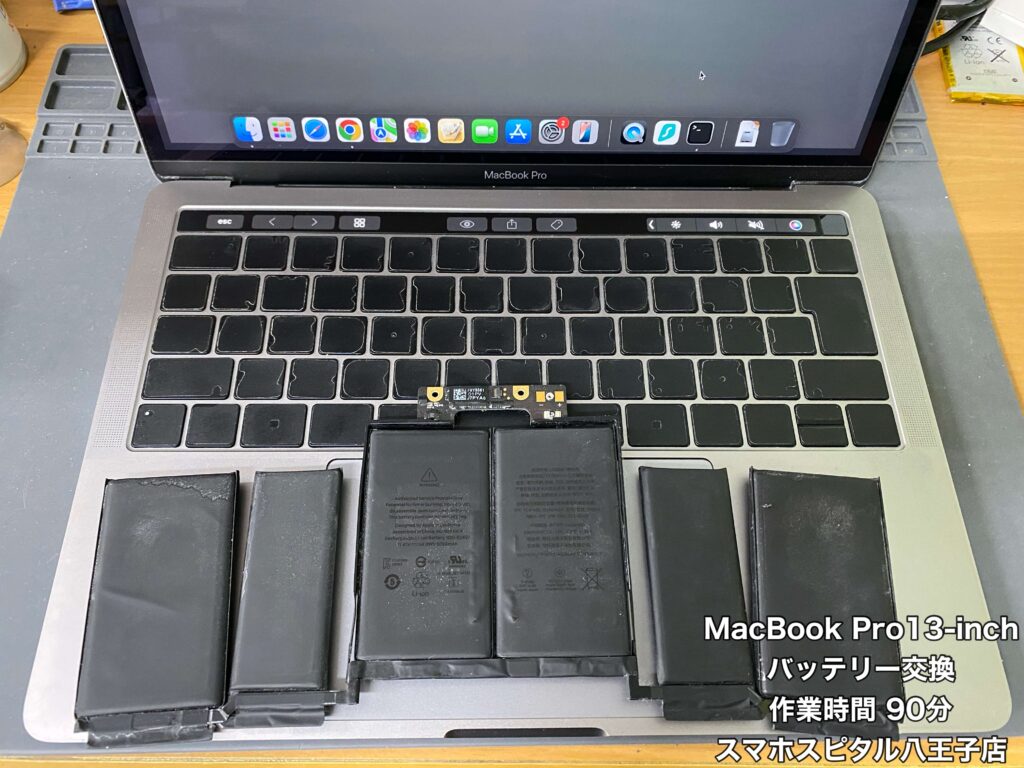 【MacBookPro13-inch 修理】バッテリーの減りが早くて困っている。作業時間は90分!修理のリスクなどもしっかりご説明!ご相談はスマホスピタル八王子店へ!!